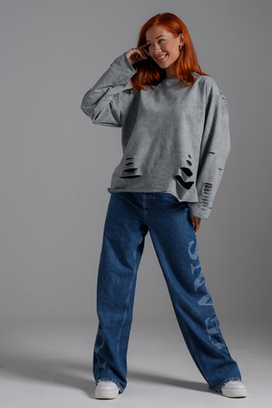 Свитшот станет отличным дополнением к вашему гардеробу благодаря своему унисекс дизайну. Теперь каждый может насладиться комфортом и стилем этой вещи без ограничений. Длинная толстовка имеет необработанный край, что добавляет ей небрежности и непринужденности. Безупречная посадка и оверсайз форма делают данную толстовку подходящей для размеровс 42 по 52. Также это позволяет использовать ее как в повседневном образе, так и в спортивном стиле.