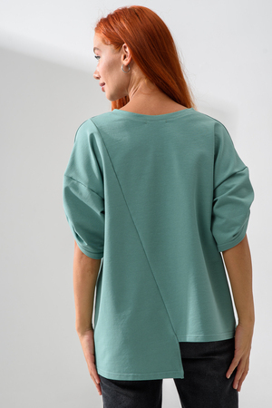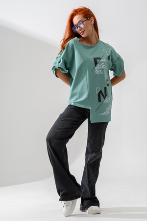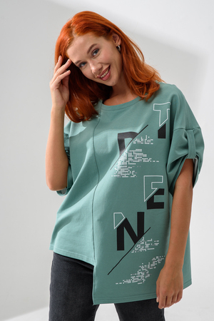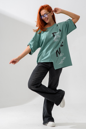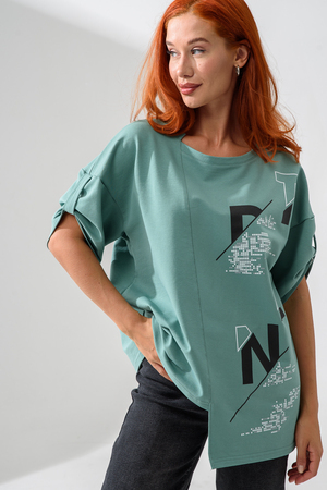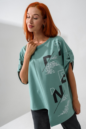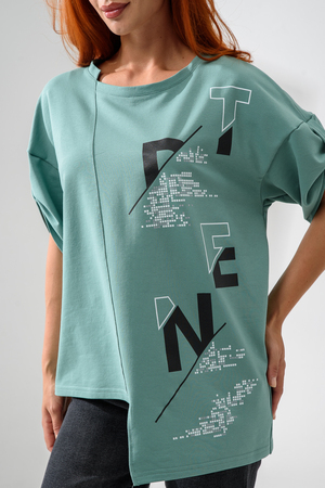 Эта стильная туника оливкового цвета станет отличным дополнением вашего гардероба. Изготовленная из легкого и дышащего материала, она идеально подходит для теплых дней.