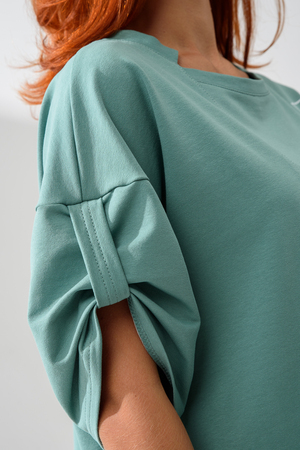 - Детали: Короткие рукава и округлый вырез подчеркивают женственность, а длина туники позволяет носить её как с леггинсами, так и с джинсами.