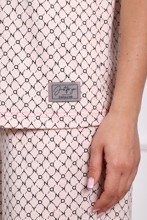 Костюм домашний женский из комфортного трикотажа со стильным принтом, с декоративной отстрочкой. Кофта на пуговицах, с коротким рукавом, с карманом на левой полочке. Шорты средней длины, с боковыми карманами, на эластичном поясе. Элегантный костюм для домашнего уюта из 100%-ого хлопка.