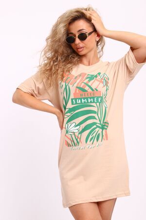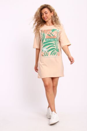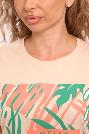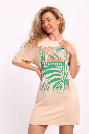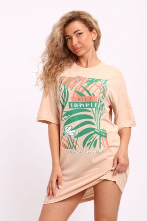 Туника женская горловина обтачка, с коротким рукавом и печатью на передней полочке.