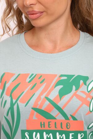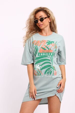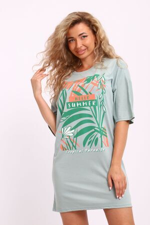 Туника женская горловина обтачка, с коротким рукавом и печатью на передней полочке.