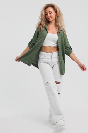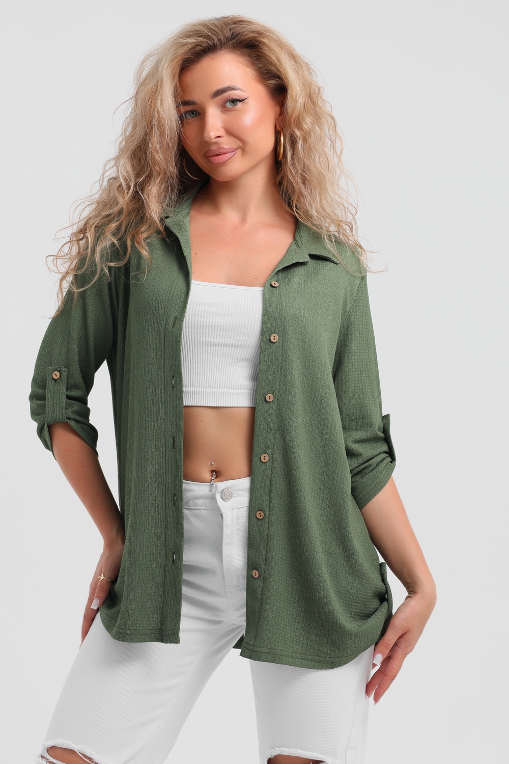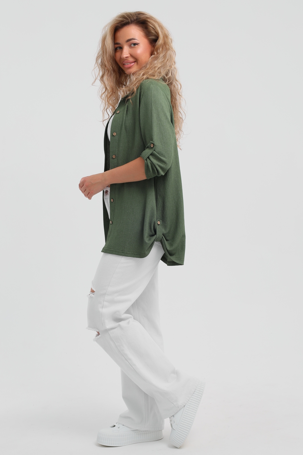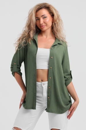 Модная рубашка в стиле oversize выполнена из лёгкого и приятного к телу материала - жатка. Это одна из самых модных и популярных моделей сезона. Рубашка имеет слегка удлинённую спинку, рукав 3/4, классический рубашечный воротник и планку. А модные цвета этого лета добавляют законченность деталям и определяют "must have" сезона. За счёт свободного фасона рубашку можно носить с любым типом фигуры, отлично подойдёт для беременных женщин, а также кормящих мам. Женская рубашка идеальна как для лета, так и для прохладного вечера. С помощью такой рубашки Вы можете создать деловой образ или летний расслабленный. А также отправиться на праздник или вечеринку, в школу или на прогулку, на пляж или провести незабываемый вечер дома. Модель такого плана идеально подойдёт и в качестве подарка для себя и своих любимых!