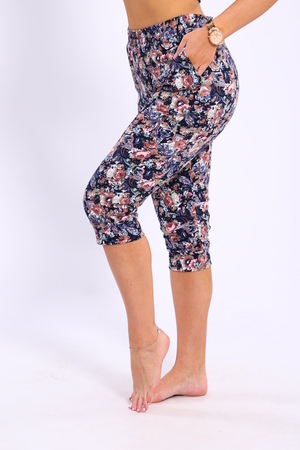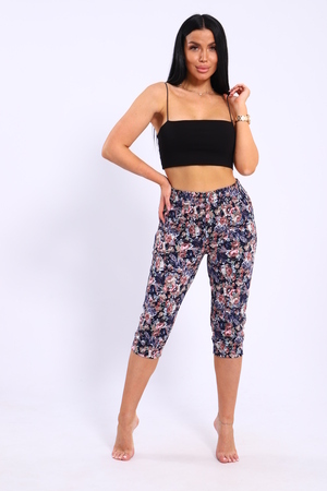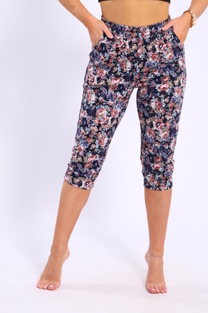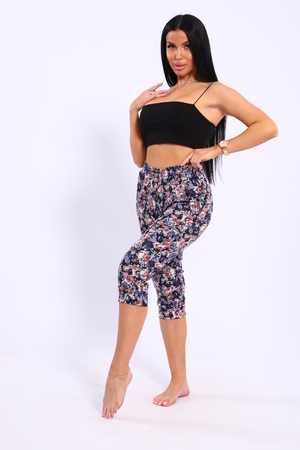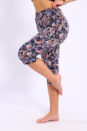 Бриджи женские с цветочным узором, эластичным поясом и двумя боковыми карманами. Бриджи выполнены из премиального интерлока.