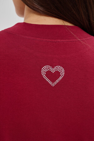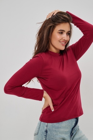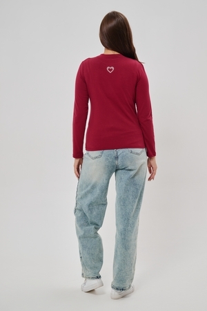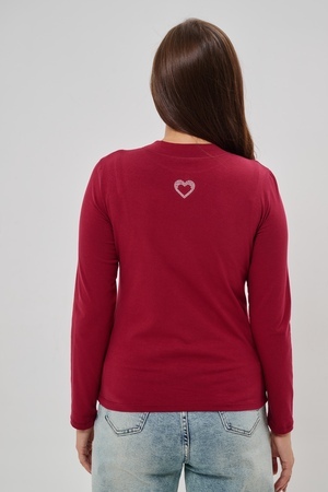 Женский лонгслив из высококачественной кулирки обладающий умеренно приталенным силуэтом и круглым вырезом горловины. Представлен в базовых однотонных цветах, имеет дополнительную градацию размеров для оптимальной посадки. Задняя сторона украшена орнаментом из страз в форме сердца. Универсальная модель для межсезонья, успешно гармонирует с разнообразными элементами гардероба различного стиля.