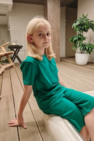 Костюм с шортами для мальчика и девочки - это универсальный и стильный комплект одежды для активных детей. Он представляет собой классический костюм, состоящий из шортов и футболки, выполненных из качественных материалов.