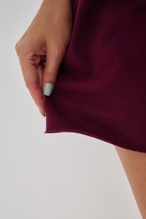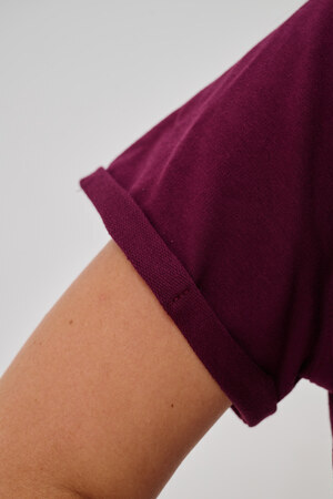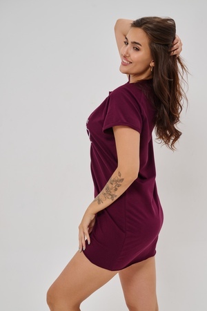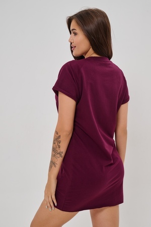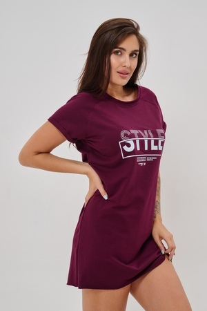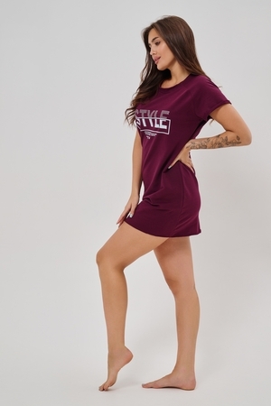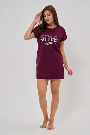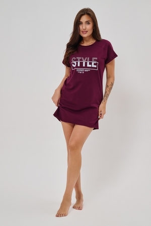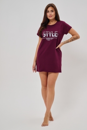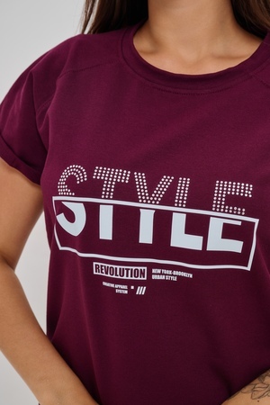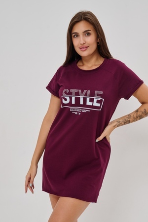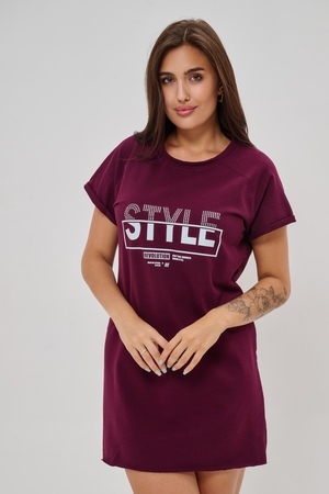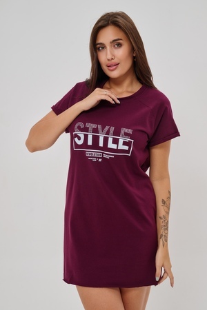 Женская туника-футболка выполнена в лаконичном стиле с прямыми линиями кроя. Ее отличает удобный фасон, подчеркивающий женственность фигуры. Модель оснащена круглым вырезом горловины и короткими рукавами типа реглан, обеспечивающими свободу движений и комфорт. Особенностью изделия является оригинальная отделка — низ туники оставлен с необработанными краями, создавая эффект легкой небрежности и современности. Центральное внимание привлекает стильный принт на груди с выразительной надписью "STYLE", украшенный сверкающими стразами, придающий образу дополнительную яркость и шарм.