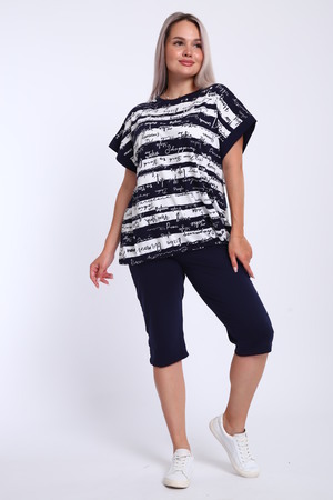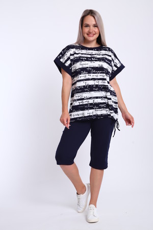 Костюм женский футболка и бриджи. Футболка свободного кроя, плечо спущенное на манжете. Низ футболки собирается на шнурок. Бриджи на резинке, без карманов