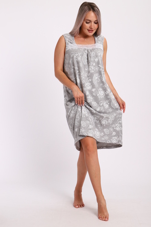 Сорочка женская с кружевом, без рукава. Данная модель выполнена из трикотажного полотна кулирка (хлопок 100%). Полочка изделия отрезная со сборкой, к которой пришито эластичное кружево. Отлично подходит для сна.