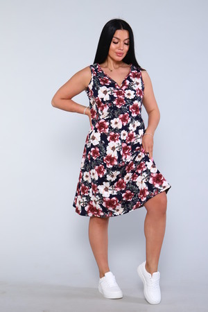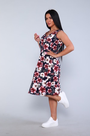 Сарафан женский трикотажный имеет широкий размерный ряд с 50-го по 60-й размерный. Модель выполнена из кулирного волокна.