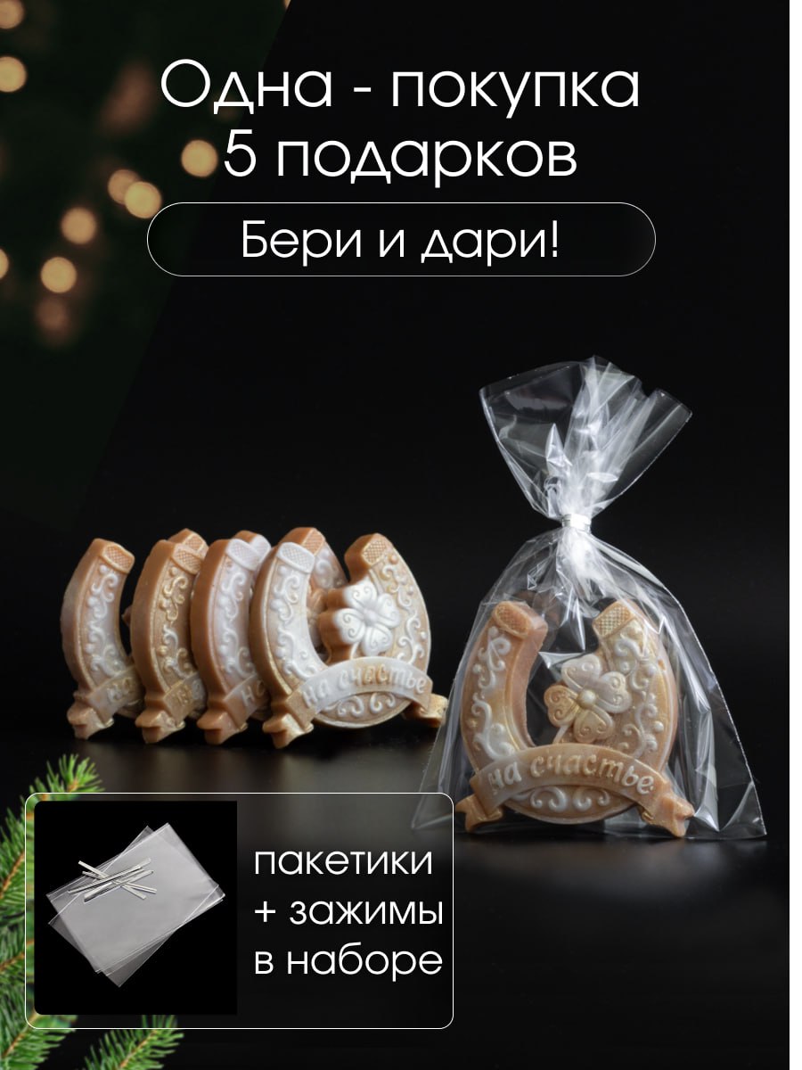 В комплекте к каждой фигурке из мыла идет подарочный пакет с зажимом.