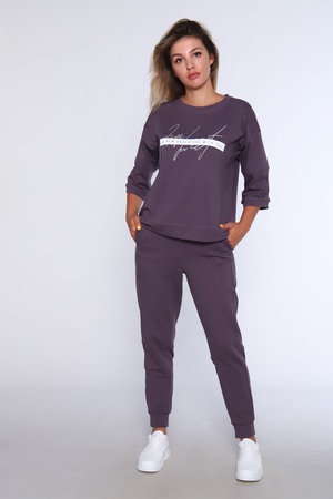 Костюм женский с зауженными брюками и манжетами внизу, на резинке и свободной кофтой с рукавами 3/4. Модель выполнена из футера 2-х нитки (петля - хлопок).