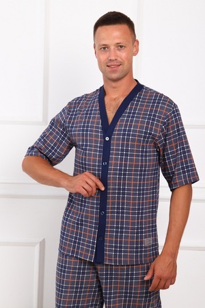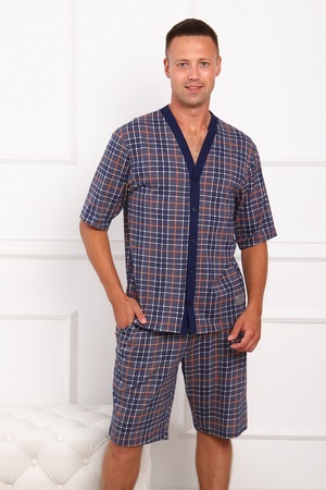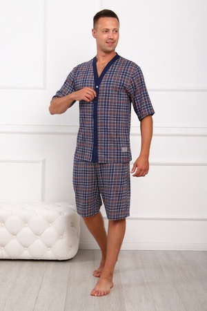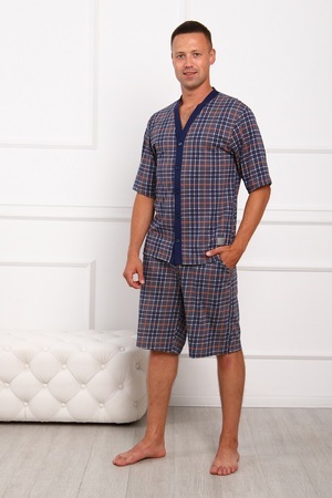 Пижама мужская, классическая, в клетку. Очень комфортный и мягкий трикотаж, удобный крой. Шорты на эластичном поясе, с двумя боковыми карманами. 100% хлопок.