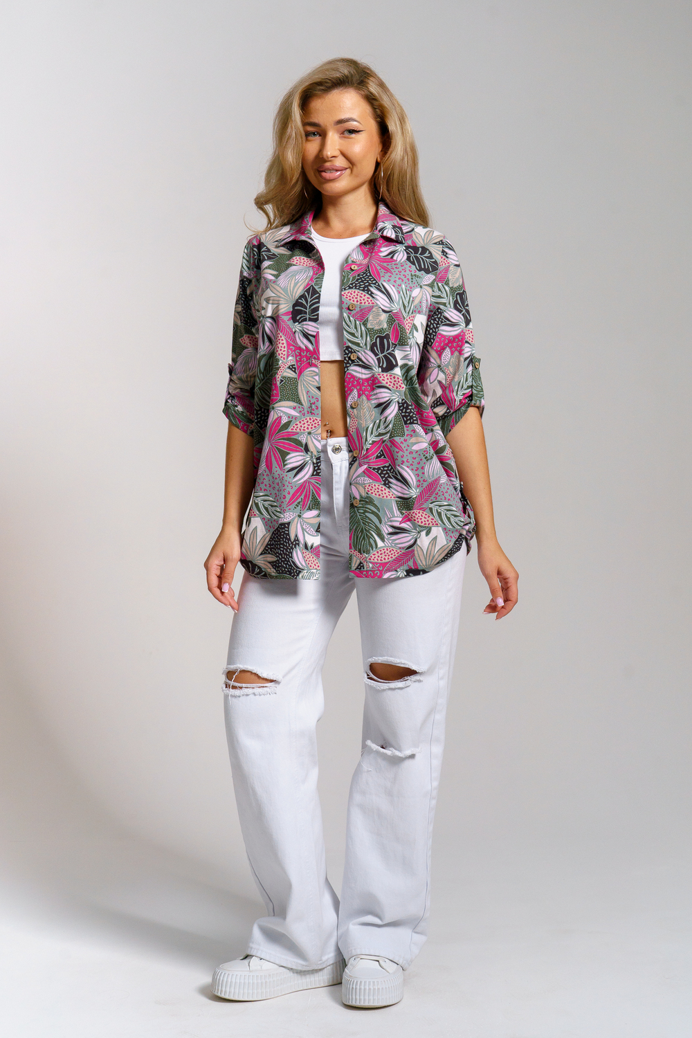Женская стильная туника - рубашка выполнена из 100% хлопчатобумажного полотна. Новый дизайн и отличное качество делает изделие модным, легким и приятным на ощупь, не сковывает движения, поэтому отлично подойдет как для школы, дома и работы, так и для повседневной носки. Модель дополняет рубашечный воротник, паты и планка с расстёгивающимися пуговицами, делая её более комфортной. Женская свободная рубашка не сковывает движения, поэтому отлично подойдет будущим мамам, беременным женщинам и кормящим. Расстёгивающаяся планка сделает кормление малыша удобным и комфортным, а за счет качественного хлопкового трикотажа еще и безопасным и экологичным. Мы специально разработали рубашку для женщин большого размера. Большие размеры любят и подростки, которые предпочитают вещи оверсайз (oversize). Рубашка женская - это базовая вещь в гардеробе девушки или женщины, является идеальным вариантом для офиса, работы, школы и путешествий. Удлиненную рубашку можно носить дома и в качестве повседневной одежды.