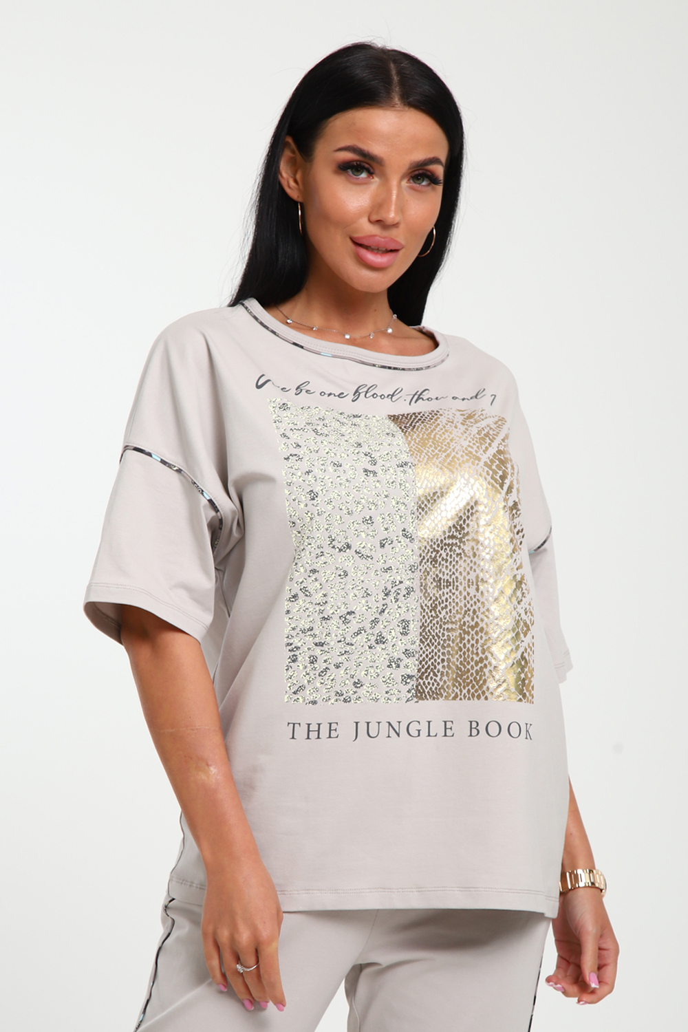 Трикотажная футболка премиум качества с модным принтом от NINEL. Модель выполнена из высококачественного кулирного волокна с лайкрой.