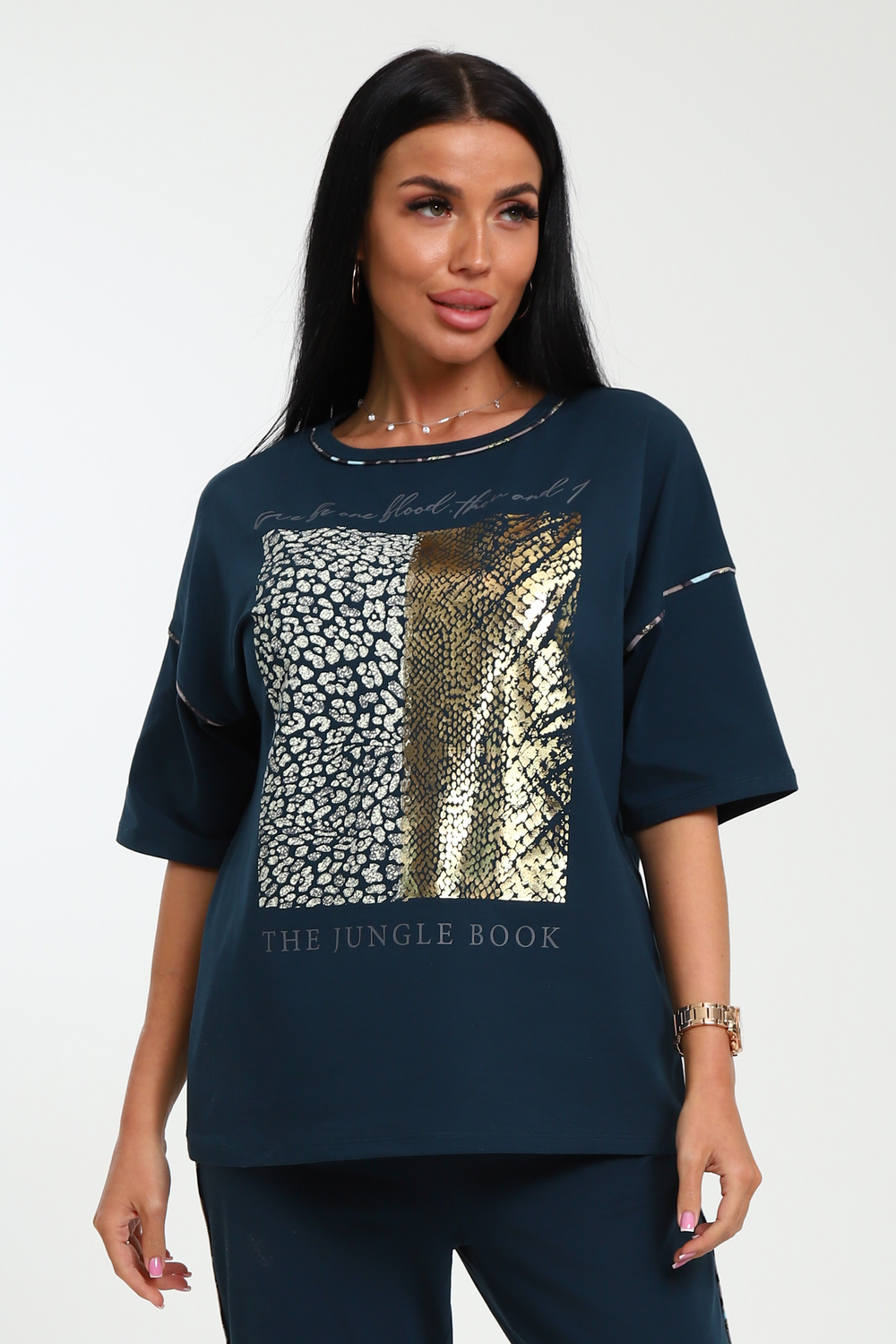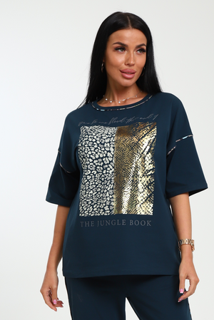 Трикотажная футболка премиум качества с модным принтом от NINEL. Модель выполнена из высококачественного кулирного волокна с лайкрой.