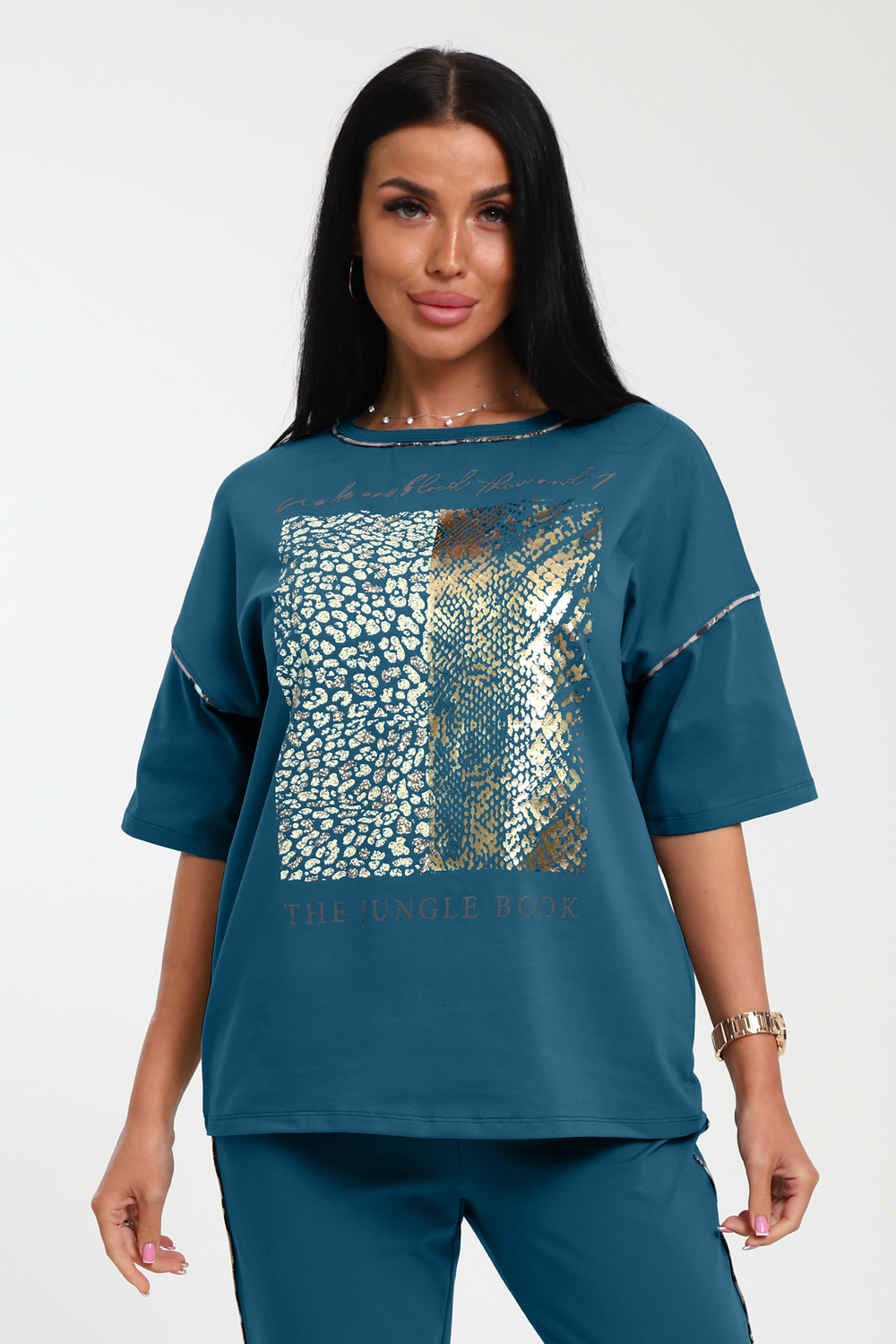 Трикотажная футболка премиум качества с модным принтом от NINEL. Модель выполнена из высококачественного кулирного волокна с лайкрой.