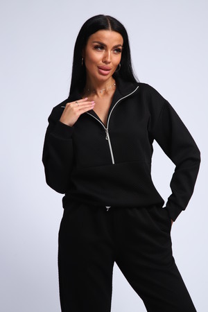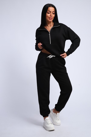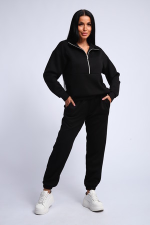 Ищете идеальный спортивный костюм? Этот женский костюм из мягкой и уютной ткани фукра – воплощение комфорта и стиля! Толстовка с манжетами и воротником-стойкой, застегивающаяся на молнию, обеспечит тепло и защиту от ветра. Горловина на молнии позволяет регулировать температуру и создавать различные образы.