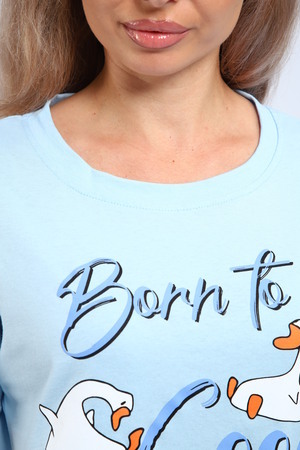 Женская пижама с шортами. Шорты на резинке с карманами. Футболка с обтачко горловины, передняя полочка с печатью.