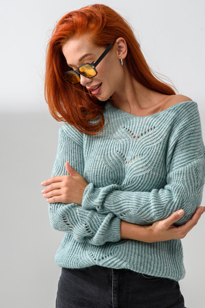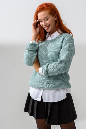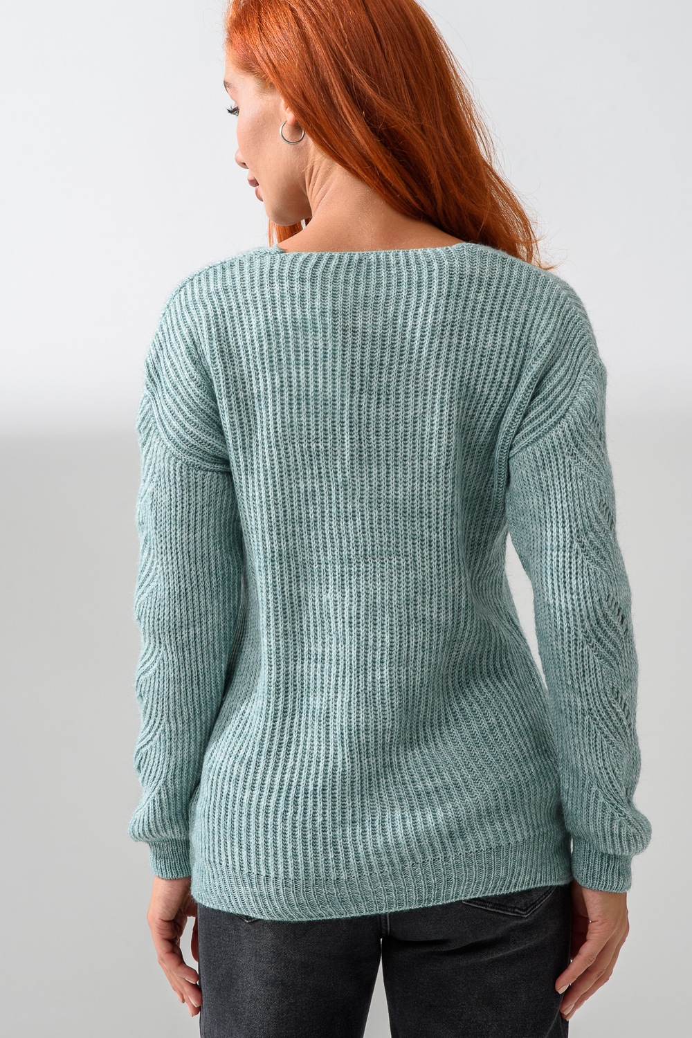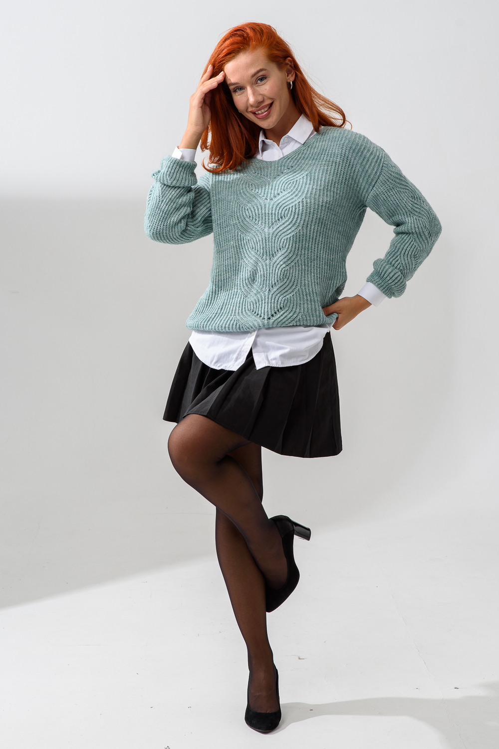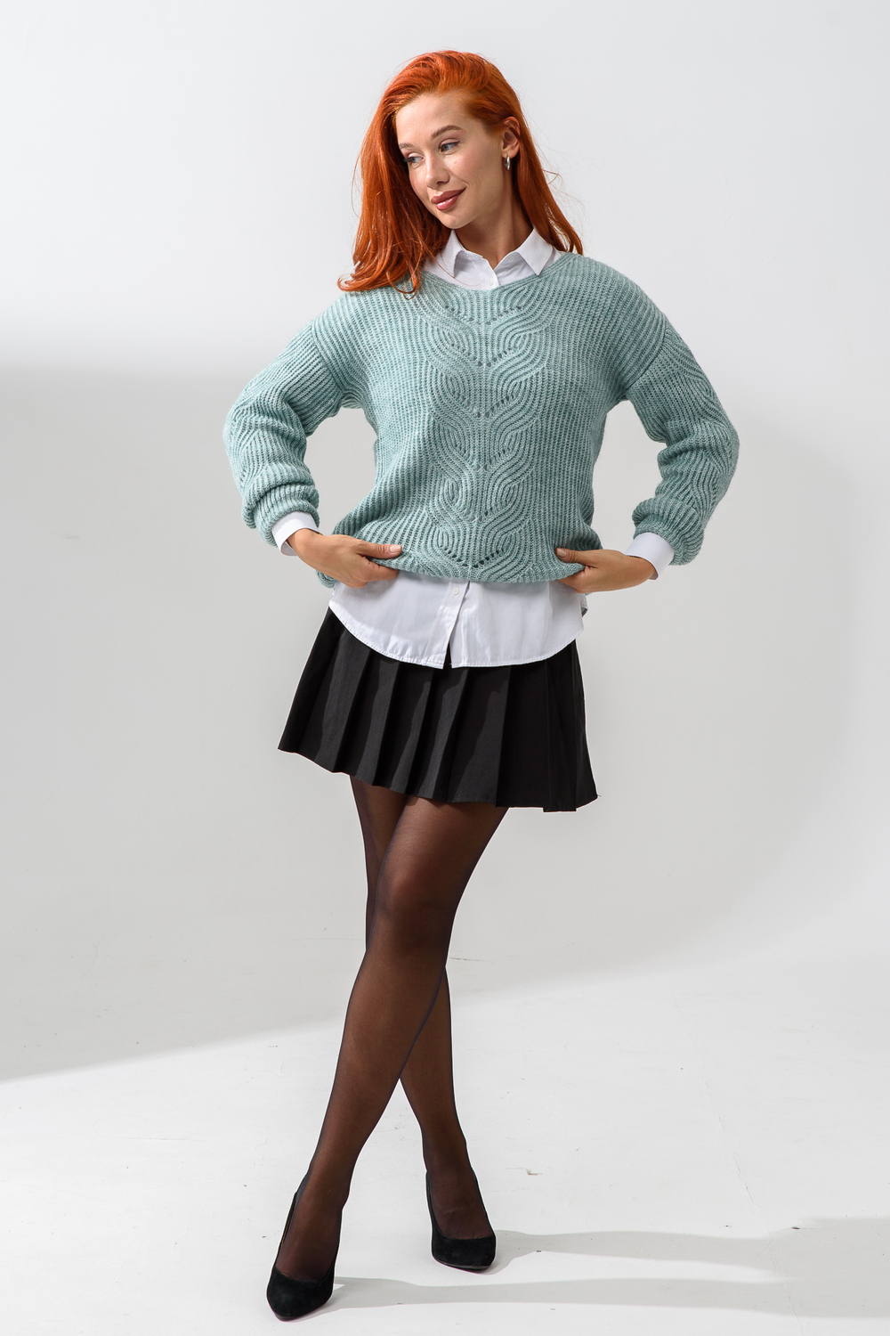 Но вязка неплотная, нужно надеть что-то или того же цвета, или черное под свитер, тогда будет идеально -