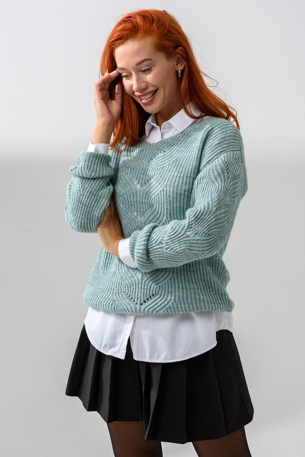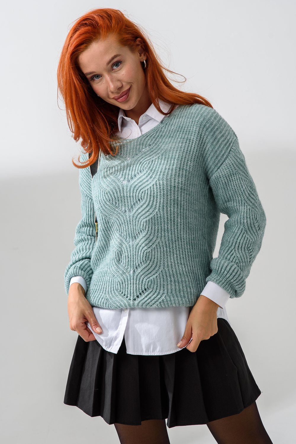 Покупатель на Ozon23.11.2025 в 22:03Джемпер красивого цвета зелено-голубого.Ткань мягкая, теплая. Отлично сел
