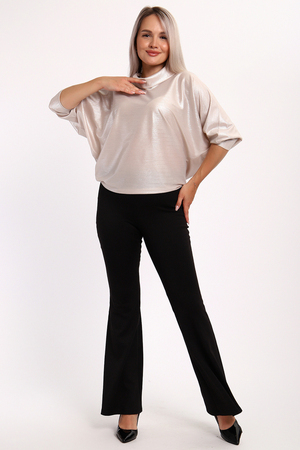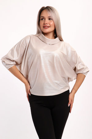 Нарядная и эффектная блузка из ткани шифон- металлик. Ткань тонкая, слегка прозрачная, имеет красивый металлический блеск, переливаясь на складках изделия, не мнется и отлично драпируется. Свободный крой и рукав "летучая мышь" делает эту блузку универсальной, подходящей на любую фигуру. Длина рукава 3/4, воротник- хомут придает женственности образу. Блузка слегка заужена к низу, чтобы на бедрах образовался напуск. С помощью этой блузки можно создать и праздничный, и деловой, и повседневный образ, комбинировать с юбкой и брюками. Широкий размерный ряд - с 48 по 62 размеры.