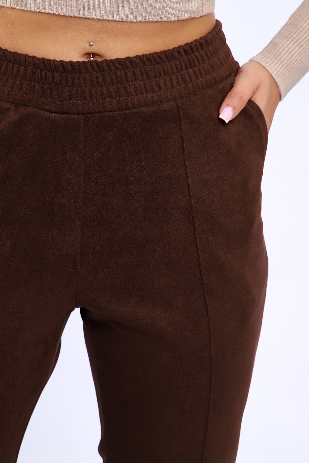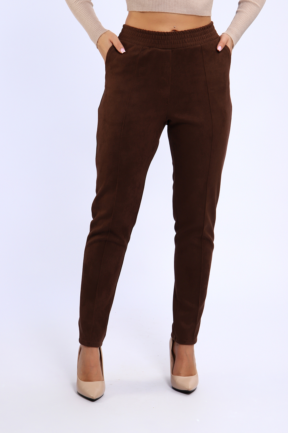 Удобные и практичные брюки из экозамши на все случаи жизни. Искуственая замша имеет приятную бархатистую поверхность, очень плотная, влагоустойчивая, хорошо тянется, проста в уходе. Брюки из этой ткани будут незаменимы в прохладное время года для прогулок и для офиса. Брюки прилегающего силуэта, средняя посадка, на передних половинках прострочены стрелки и обработана имитация гульфика. Удобный пояс на резинке, по бокам внутренние карманы. Брюки будут хорошо смотреться с обувью на каблуке и без каблука. Тем , кто желает более плотного прилегания по фигуре, советуем брать размер поменьше. В замерах обхват талии соответствует длине резинки в растянутом виде. Утюжить изделие лучше с изнанки или через ткань.