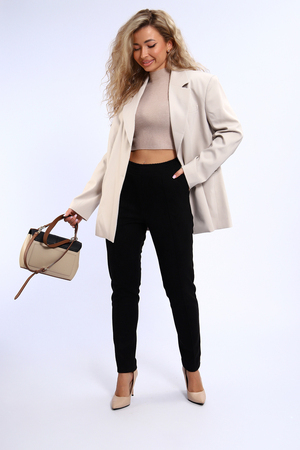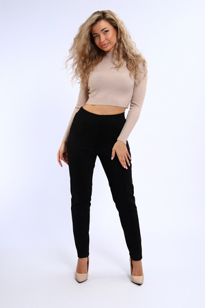 Удобные и практичные брюки из экозамши на все случаи жизни. Искуственая замша имеет приятную бархатистую поверхность, очень плотная, влагоустойчивая, хорошо тянется, проста в уходе. Брюки из этой ткани будут незаменимы в прохладное время года для прогулок и для офиса. Брюки прилегающего силуэта, средняя посадка, на передних половинках прострочены стрелки и обработана имитация гульфика. Удобный пояс на резинке, по бокам внутренние карманы. Брюки будут хорошо смотреться с обувью на каблуке и без каблука. Тем , кто желает более плотного прилегания по фигуре, советуем брать размер поменьше. В замерах обхват талии соответствует длине резинки в растянутом виде. Утюжить изделие лучше с изнанки или через ткань.