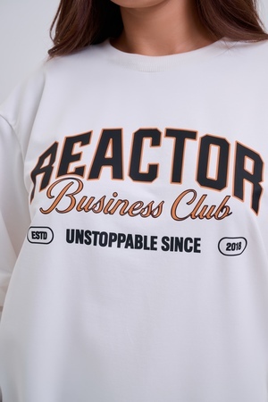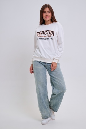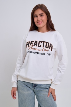 Женский свитшот свободного прямого кроя с круглой горловиной и слегка приспущенными плечами. Спереди нанесён принт в виде надписи "REACTOR". Выполнен из мягкого и приятного материала — футера 2-х нитки, обеспечивающего дополнительный комфорт и сохранение тепла даже в холодную погоду. Доступен в сдвоенных размерах, что удобно для подбора идеальной посадки. Подходит как для повседневной носки, так и для создания эффектных образов в любом стиле.