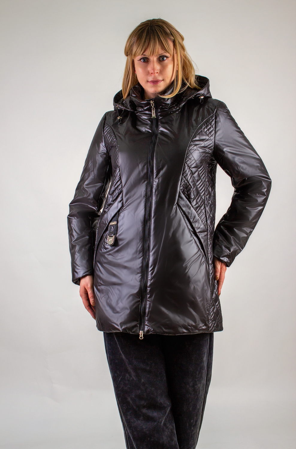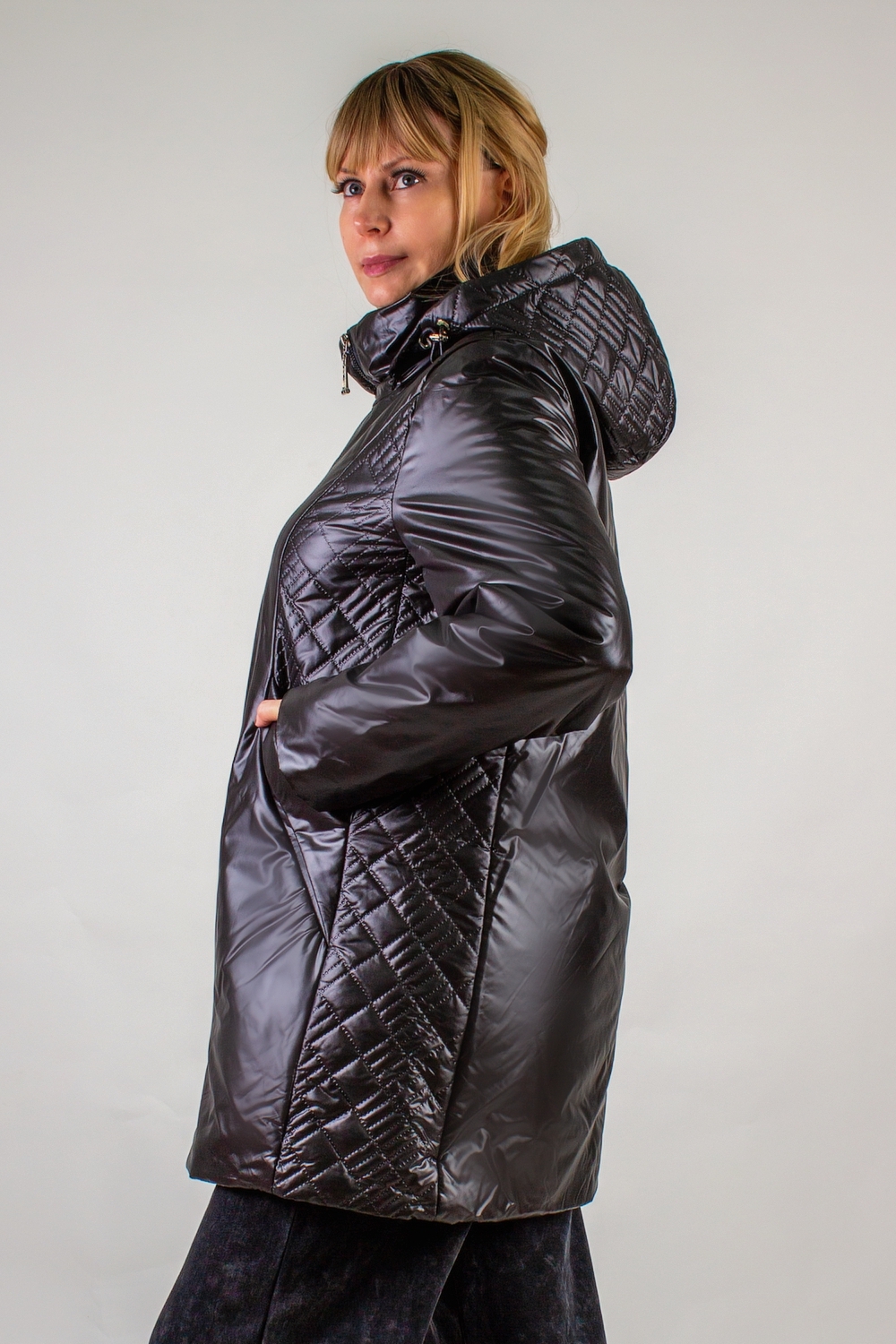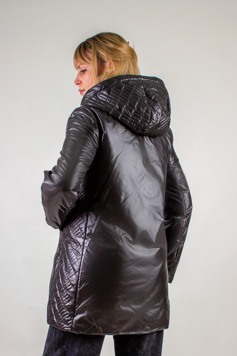 Уникальная фактурная стежка "ультрастеп" – визитная карточка этой модели. Выполненная на капюшоне и полосой по бокам, она элегантно проходит через карманы, добавляя изделию неповторимый характер: ее расположение стратегически продумано для визуальной коррекции силуэта, вытягивая фигуру и делая ее более стройной и пропорциональной.