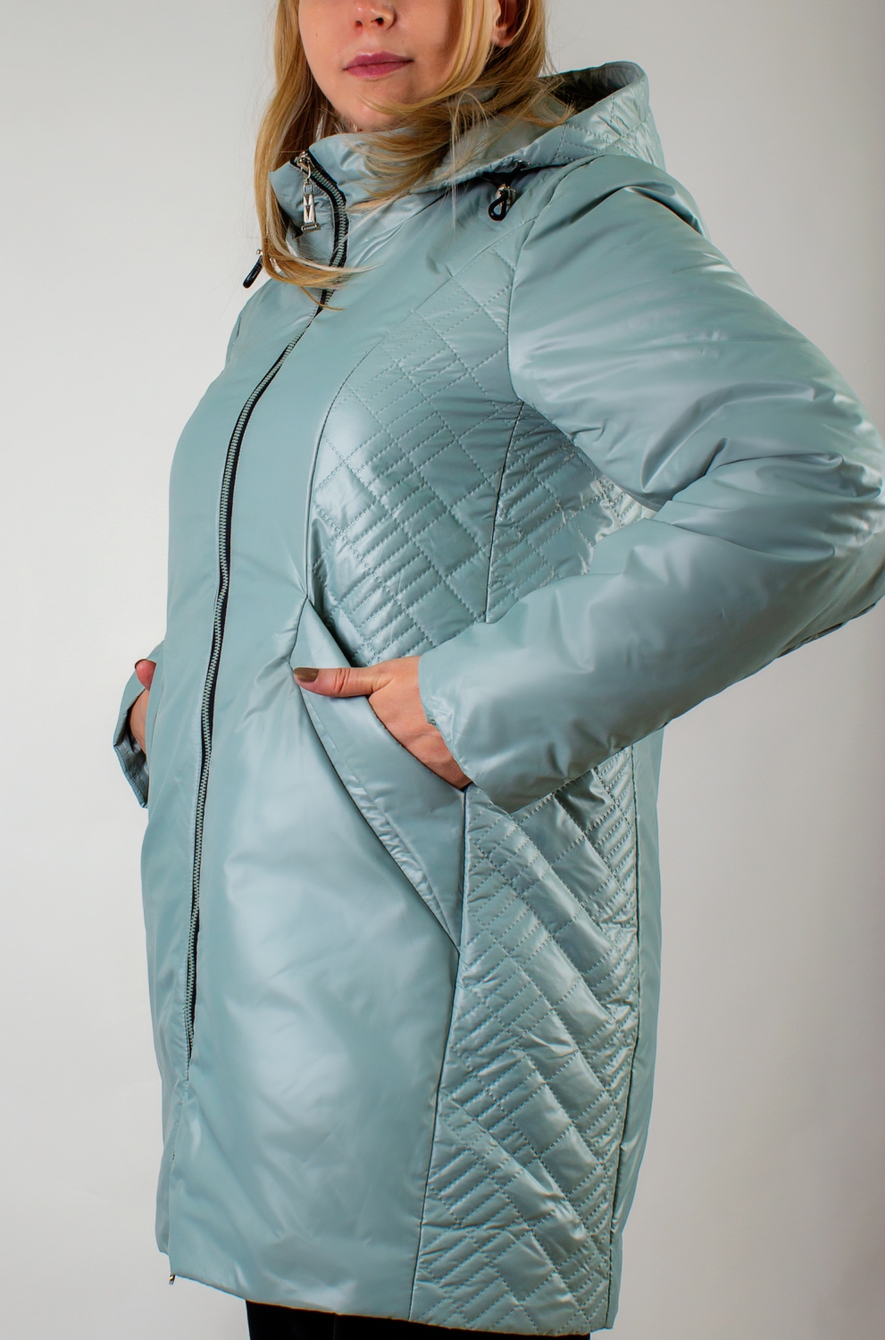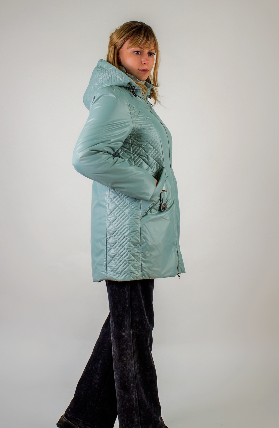 Уникальная фактурная стежка "ультрастеп" – визитная карточка этой модели. Выполненная на капюшоне и полосой по бокам, она элегантно проходит через карманы, добавляя изделию неповторимый характер: ее расположение стратегически продумано для визуальной коррекции силуэта, вытягивая фигуру и делая ее более стройной и пропорциональной.