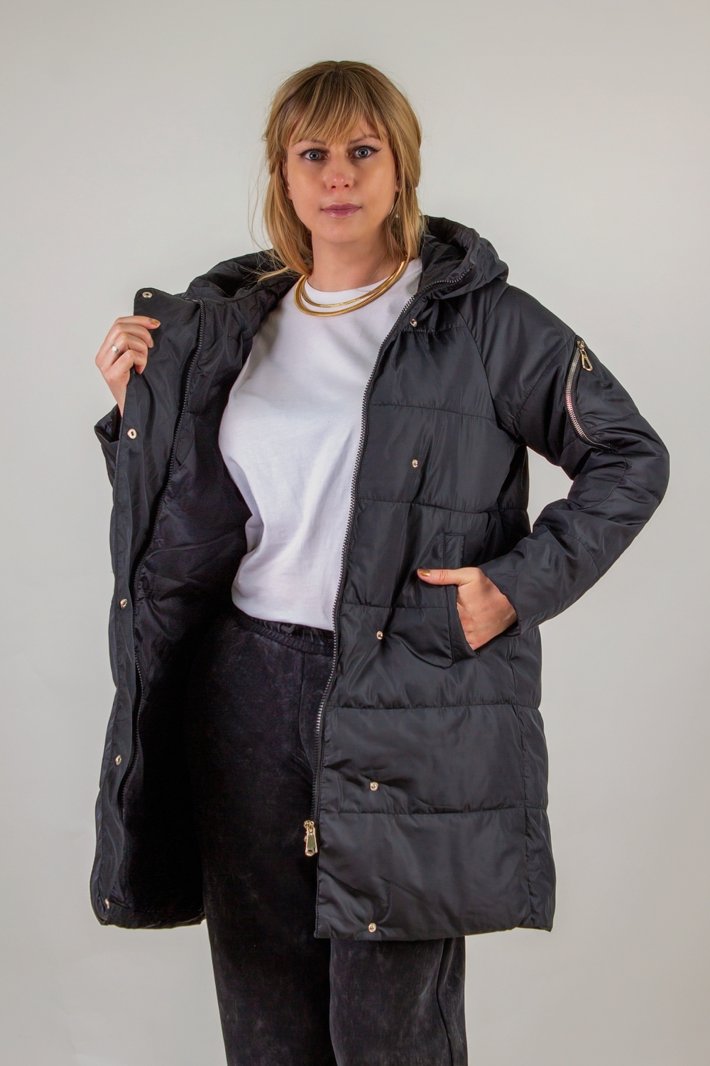 Капюшон с фиксаторами позволяет легко подстроить посадку сохранив тепло и исключив продувание. Центральная двусторонняя молния дополнена планкой на кнопках.