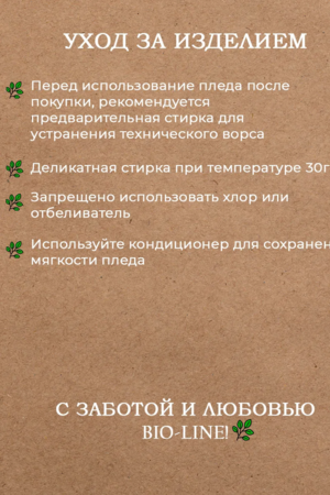 Рекомендуем постирать его в деликатном режиме перед первым использованием. Ворсинки, которые могли остаться на нем после кроя ткани на производстве, исчезнут. С любовью Bio-Line!