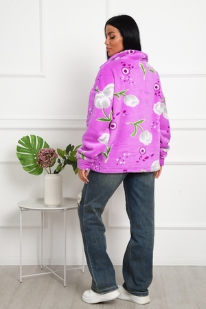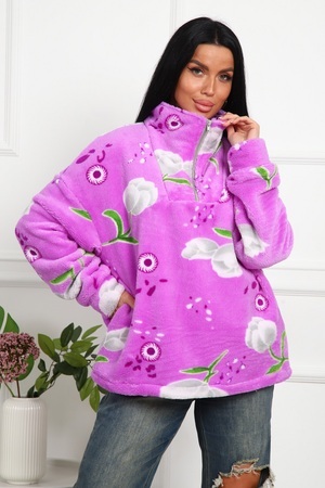 Толстовка женская свободного кроя, из уютного теплого велсофта, с комфортным воротом на молнии, с двумя боковыми карманами. Не мнётся, легко стирается.