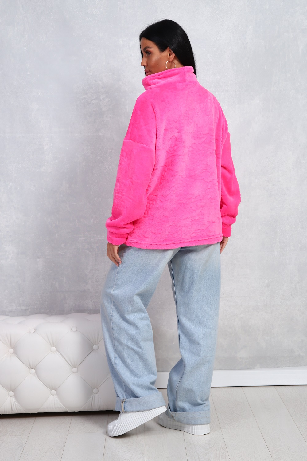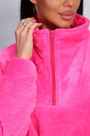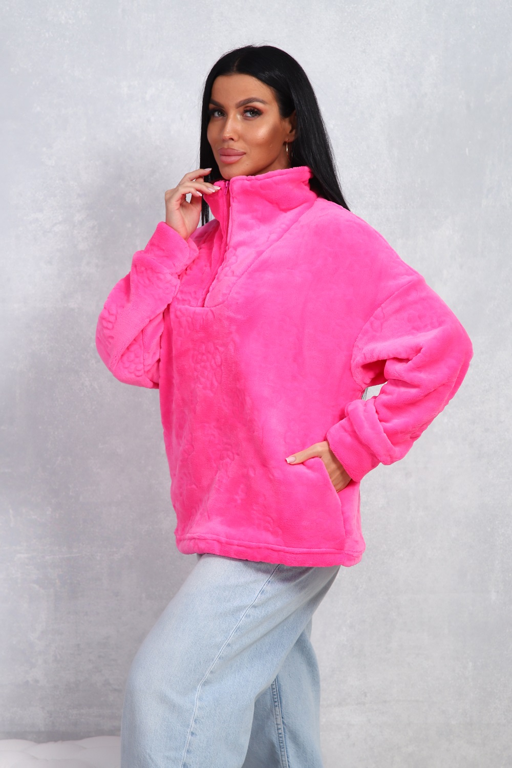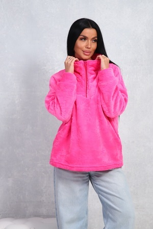 Толстовка женская свободного кроя, из уютного теплого велсофта, с комфортным воротом на молнии, с двумя боковыми карманами. Не мнётся, легко стирается.