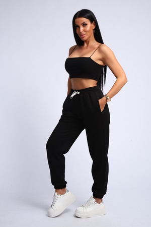 Ищете идеальные женские спортивные брюки, сочетающие удобство и актуальный дизайн? Наши брюки спортивного стиля с резинкой внизу и на поясе – это то, что вам нужно! Эти брюки – прекрасный выбор для занятий спортом, прогулок или создания расслабленного повседневного образа.