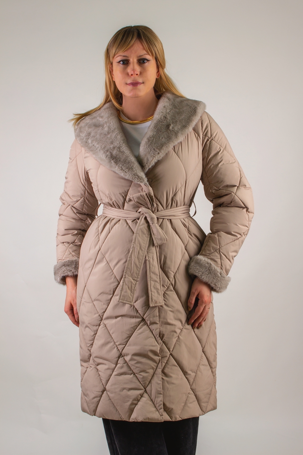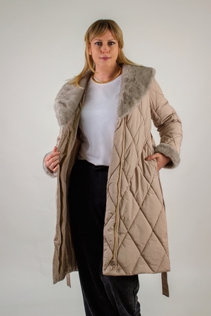 Стеганое пальто с меховой отделкой арт. 23153, евро-зима, демисезон. – это сочетание утончённого городского стиля и продуманной функциональности. Модель с утеплителем оптимальной плотности, что позволяет комфортно чувствовать себя при температурах до –10°С . Демисезонная адаптивность делает пальто универсальным решением для межсезонья, когда погода переменчива.