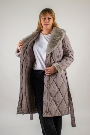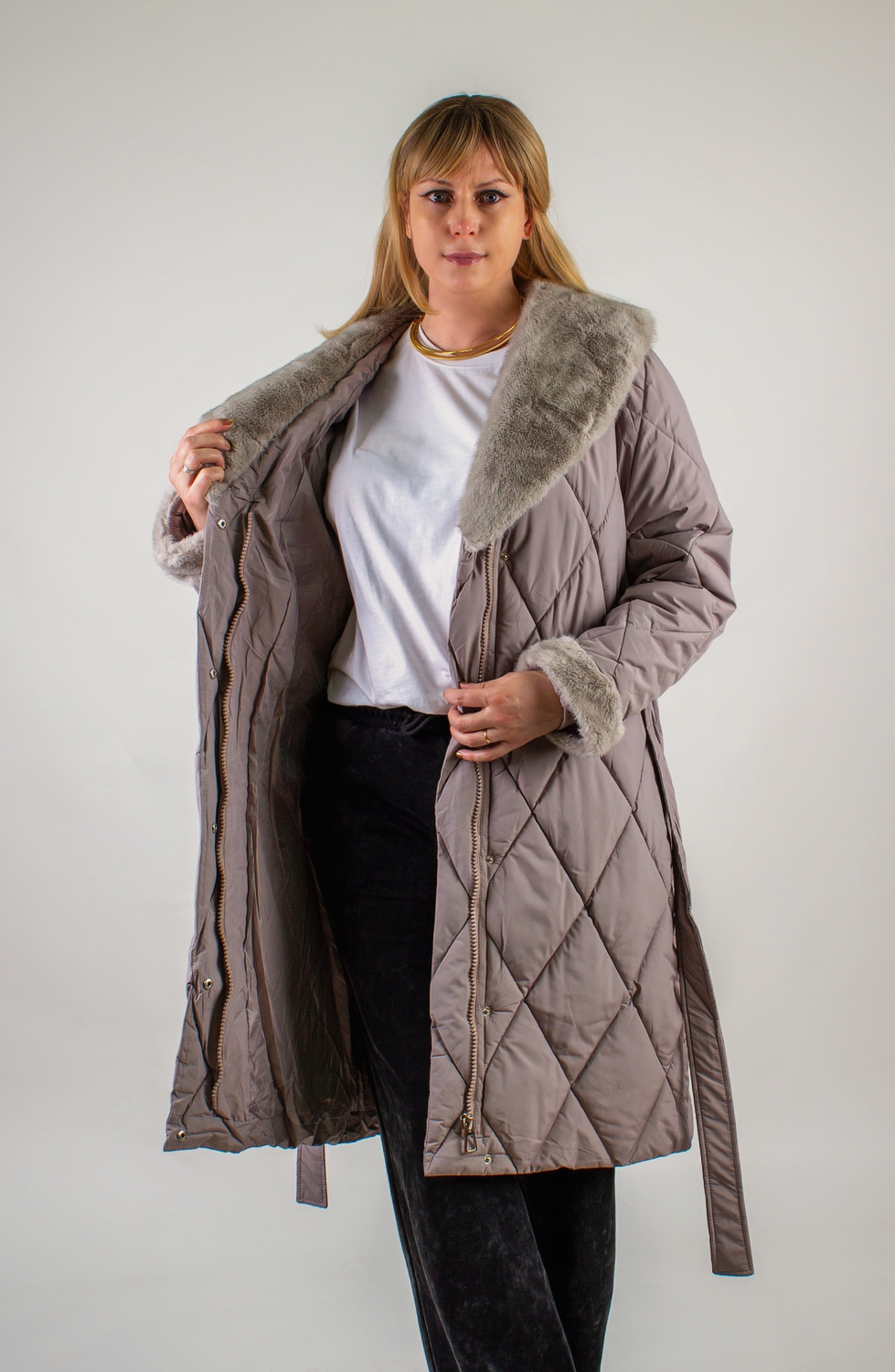 Стеганое пальто с меховой отделкой арт. 23153, евро-зима, демисезон. – это сочетание утончённого городского стиля и продуманной функциональности. Модель с утеплителем оптимальной плотности, что позволяет комфортно чувствовать себя при температурах до –10°С . Демисезонная адаптивность делает пальто универсальным решением для межсезонья, когда погода переменчива.