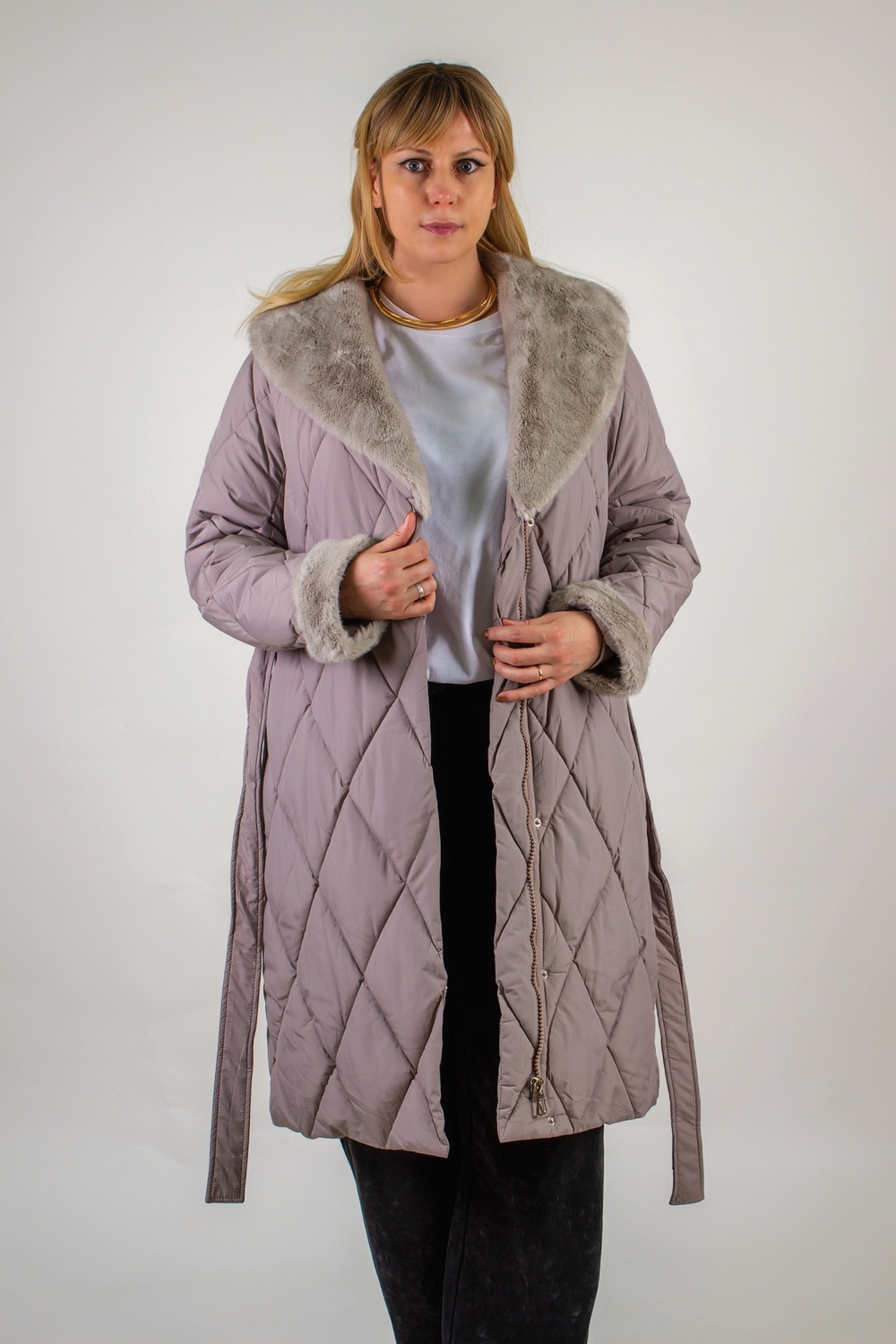 Модель: Стеганое пальто с меховой отделкой арт. 23153