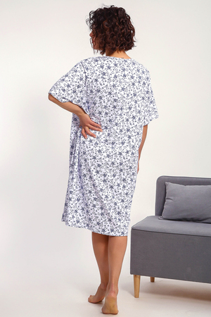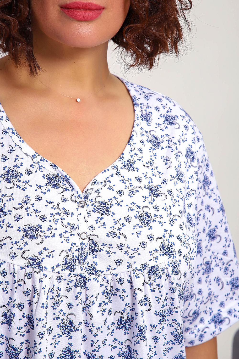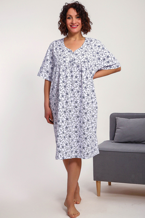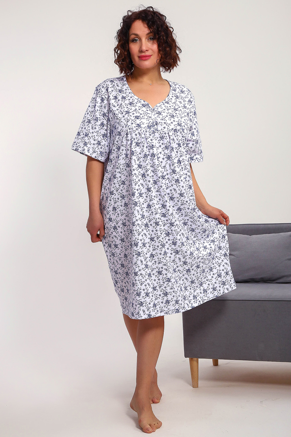 Сорочка женская с рукавом и кнопками. Данная модель выполнена из трикотажного полотна кулирка ( хлопок 100%). У данной модели полоска и спинка отрезная . Свободного покроя, не стесняет движения.