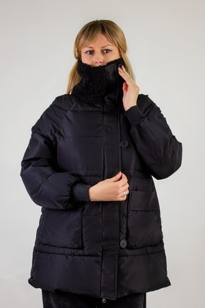 1. Воротник-стойка с отделкой из искусственного меха «под барашка» в тон основного материала: мягкий, приятный на ощупь, не требует особого ухода и не теряет формы.