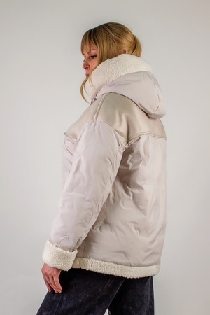 • Капюшон со стойкой-воротником на металлических фиксаторах, отделан двусторонней меховой опушкой в цвет изделия. Меховая отделка повторяется по низу куртки, придавая модели законченный образ.