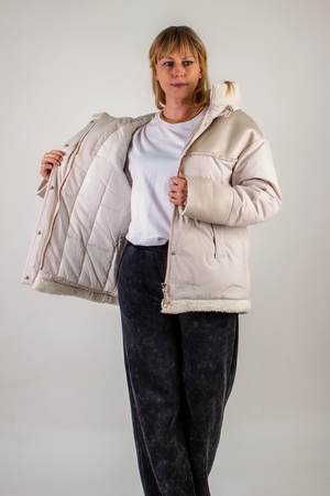• Наполнитель из верблюжьей шерсти – толщина слоя создаёт ощущение «теплого кокона», но при этом куртка остаётся лёгкой.