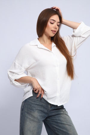 Ищете идеальную белую рубашку, сочетающую в себе свободу и изысканность? Представляем вам рубашку оверсайз "Сингапур"! Изготовленная из легкой и дышащей ткани "Сингапур", она дарит ощущение комфорта даже в самый жаркий день.