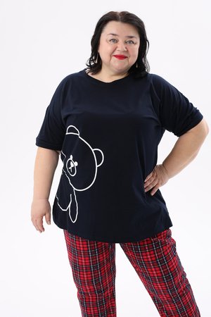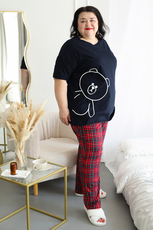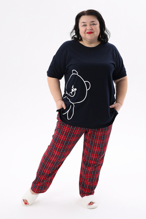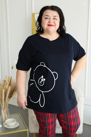 Представляем вам уютный и стильный домашний комплект от ВРазмере, созданный специально для комфортного отдыха. Пижама женская больших размеров порадует вас своей практичностью и привлекательным дизайном. Удлиненная футболка с милым принтом мишки и короткими рукавами создана для максимального комфорта, а свободные брюки в красную клетку на удобной резинке обеспечат свободу движений. Этот комплект станет идеальным выбором для женщин, ценящих уют и комфорт. Натуральный трикотаж из 100% хлопка приятен к телу и позволяет коже дышать, что особенно важно для чувствительной кожи. Пижама подходит для повседневного ношения дома, а также станет отличным подарком для любимых женщин. Благодаря универсальному дизайну, пижама подойдет как для высоких, так и для невысоких женщин. Стирка при температуре не более 40°C сохранит яркость красок и мягкость ткани. Побалуйте себя комфортом и стилем с пижамой DomTex!