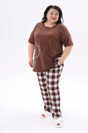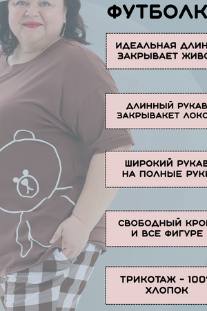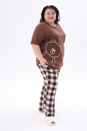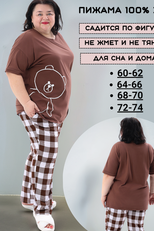 Представляем вам уютный и стильный домашний комплект от ВРазмере, созданный специально для комфортного отдыха. Пижама женская больших размеров порадует вас своей практичностью и привлекательным дизайном.  Удлиненная футболка с милым принтом мишки и короткими рукавами  создана для максимального комфорта, а свободные брюки в красную клетку на удобной резинке обеспечат свободу движений.  Этот комплект станет идеальным выбором для женщин, ценящих уют и комфорт.  Натуральный трикотаж из 100% хлопка приятен к телу и позволяет коже дышать, что особенно важно для чувствительной кожи.  Пижама подходит для повседневного ношения дома, а также станет отличным подарком для любимых женщин.  Благодаря универсальному дизайну, пижама подойдет как для высоких, так и для невысоких женщин.  Стирка при температуре не более 40°C сохранит яркость красок и мягкость ткани.  Побалуйте себя комфортом и стилем с пижамой DomTex!