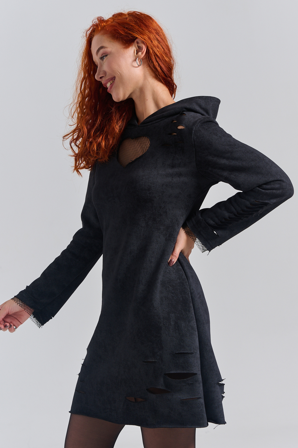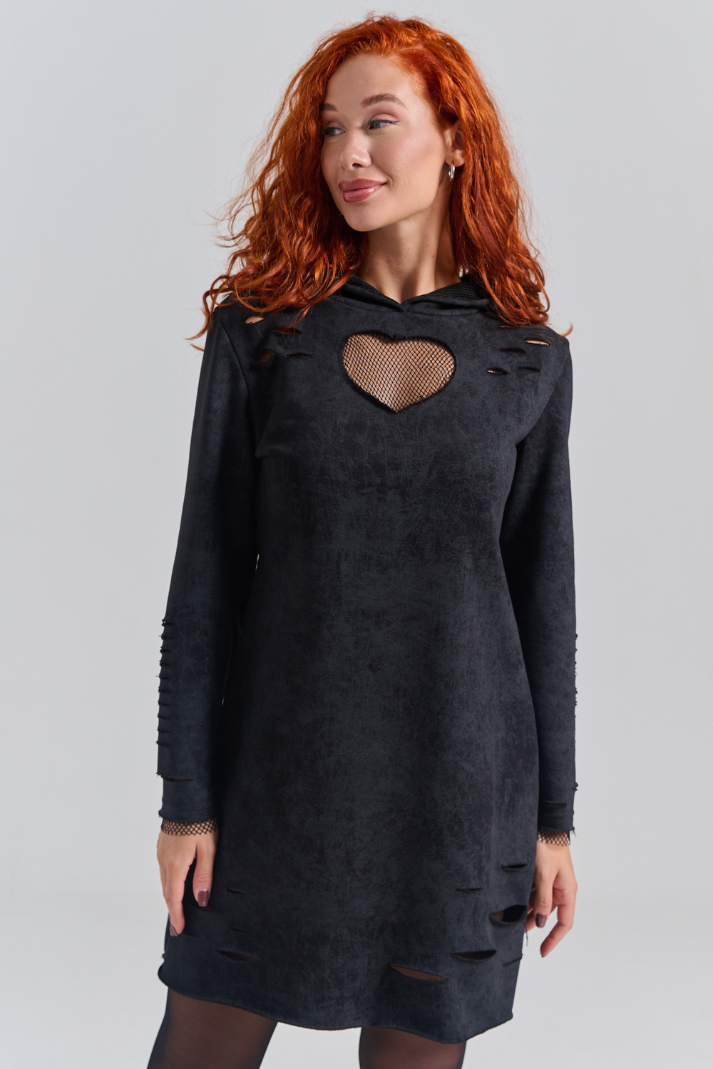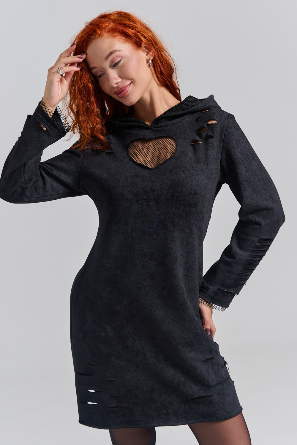 В спортивном платье со рваными краями вы будите в центре внимания. Дырявая одежда - новый тренд нашего времени. Модный в этом сезоне узор из спущенных петель и дырок на платье сделает образ более дерзким и хулиганистым, добавит непринужденности и легкой небрежности.