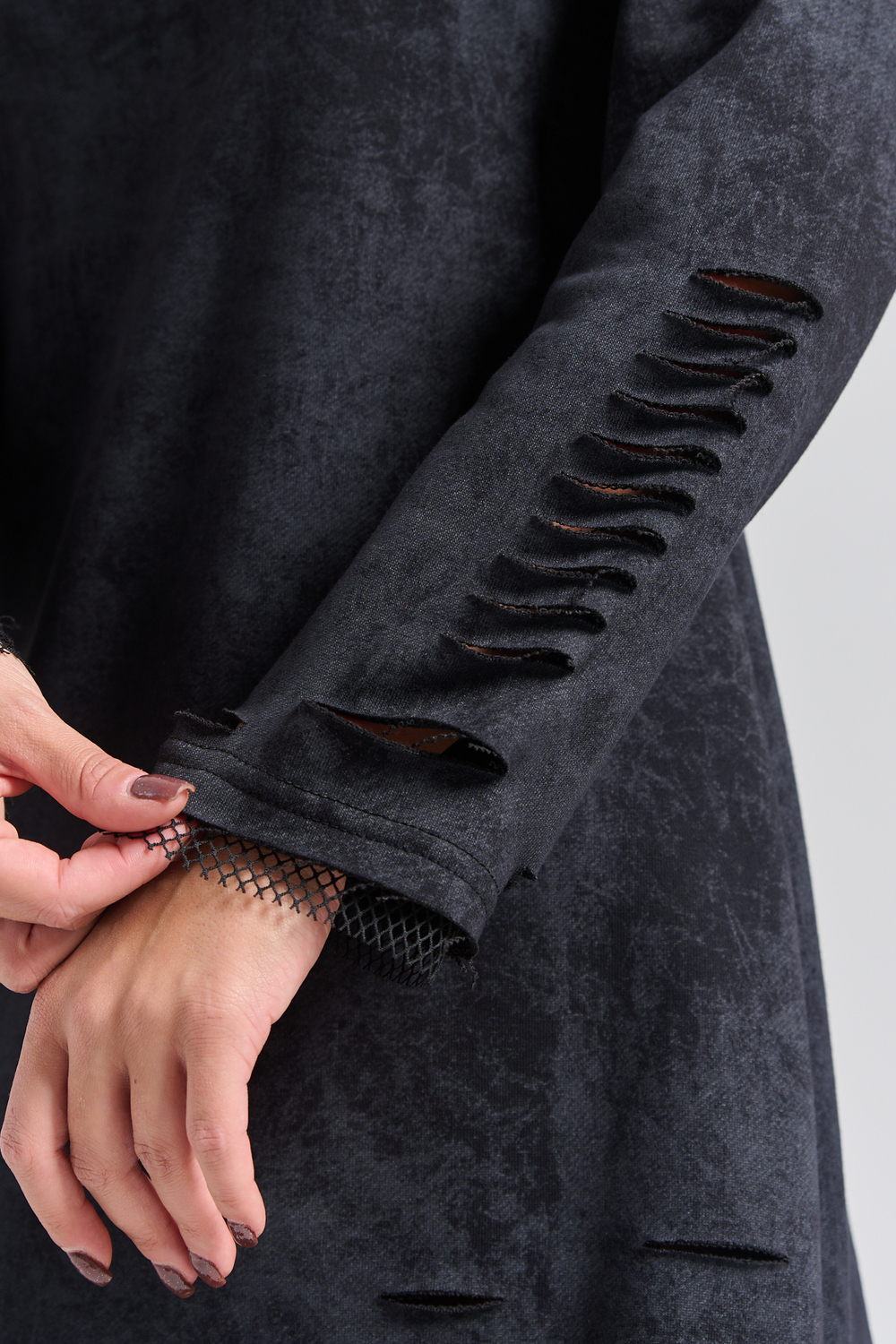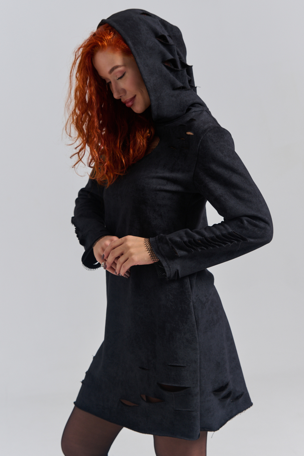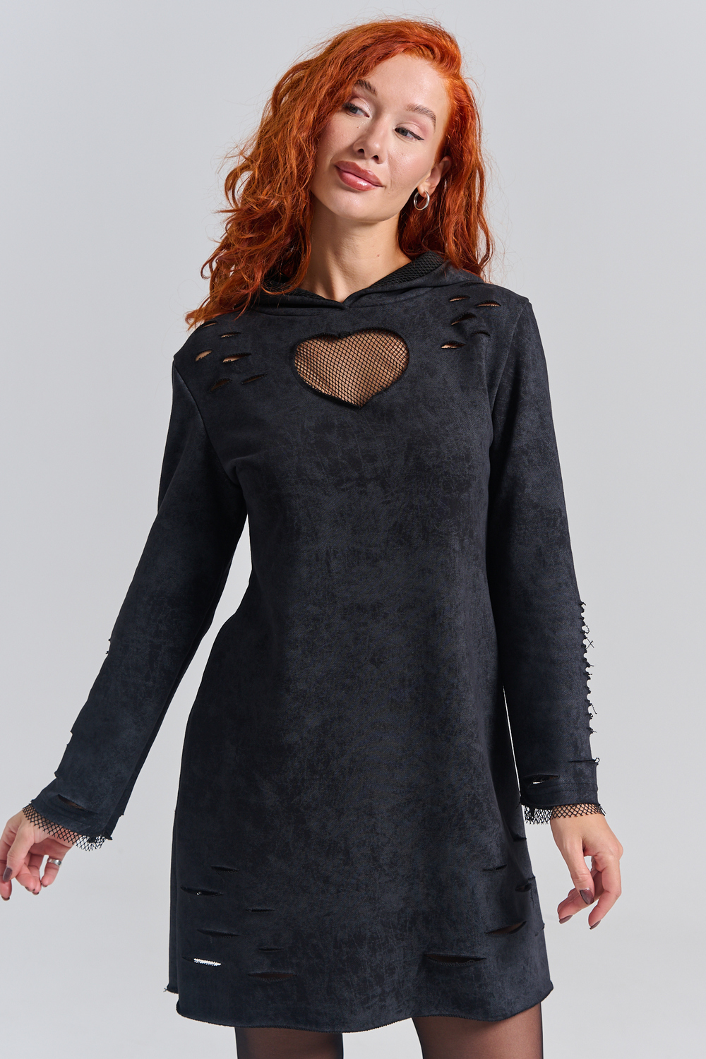 В спортивном платье со рваными краями вы будите в центре внимания. Дырявая одежда - новый тренд нашего времени. Модный в этом сезоне узор из спущенных петель и дырок на платье сделает образ более дерзким и хулиганистым, добавит непринужденности и легкой небрежности.