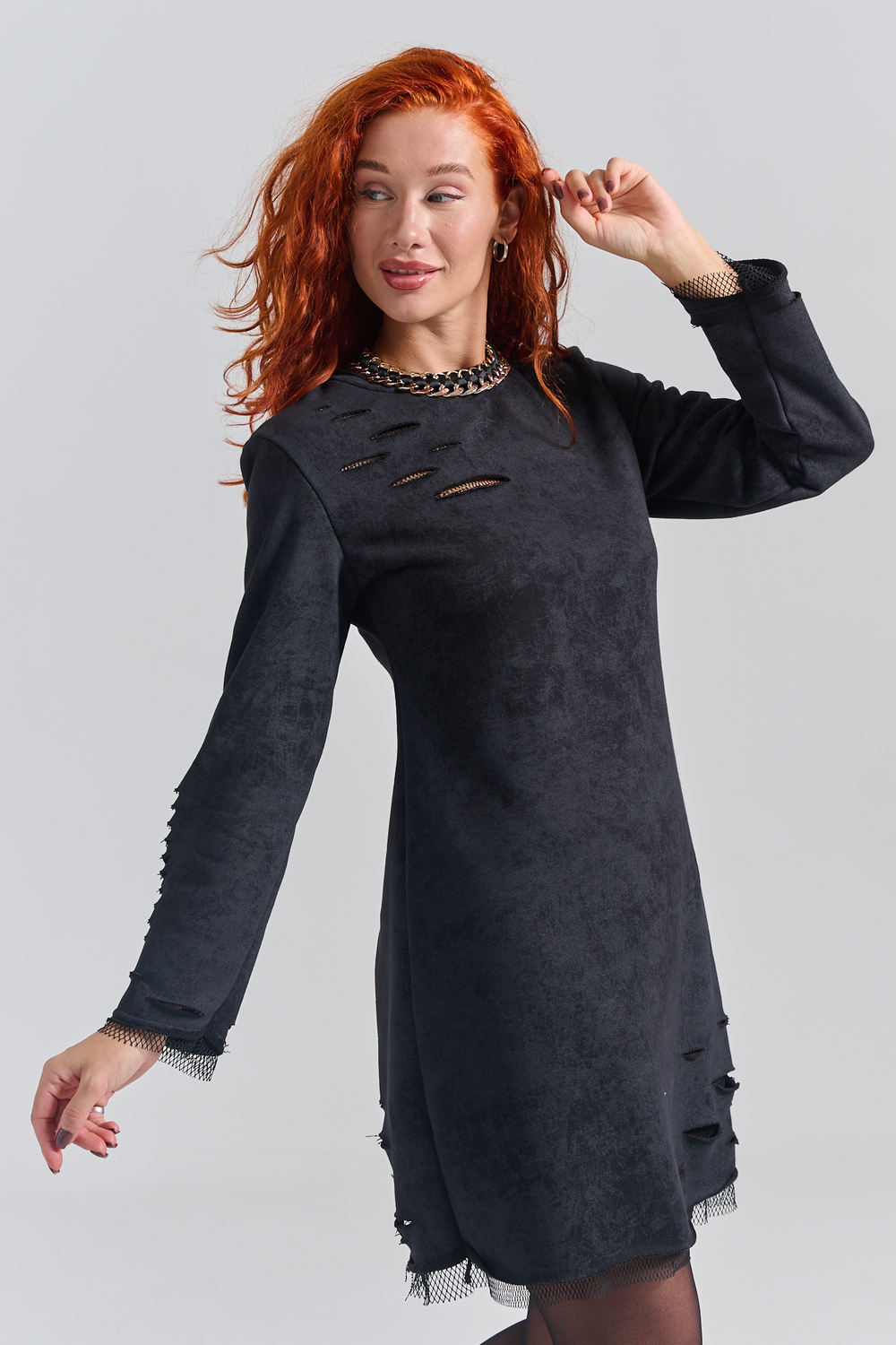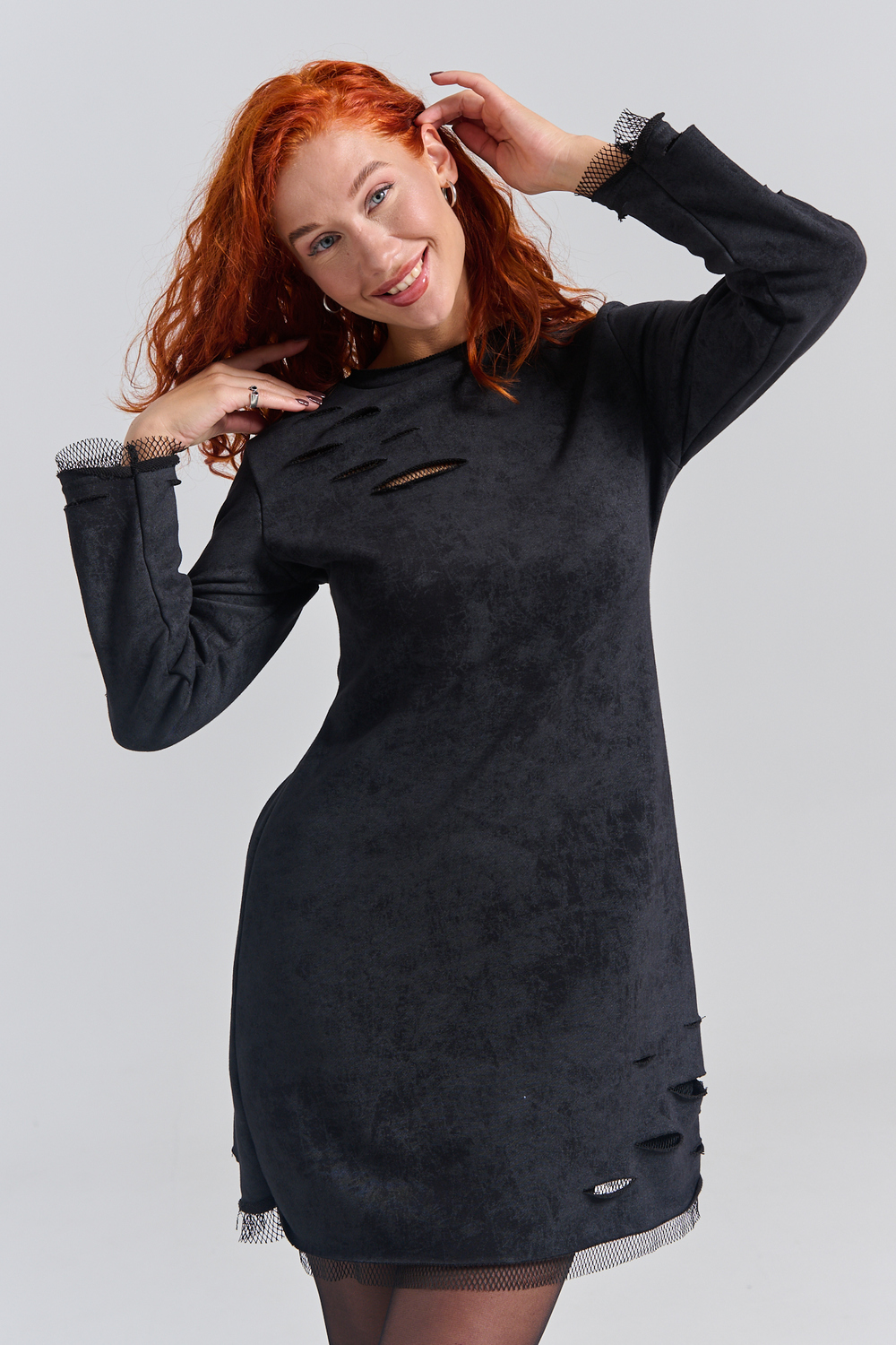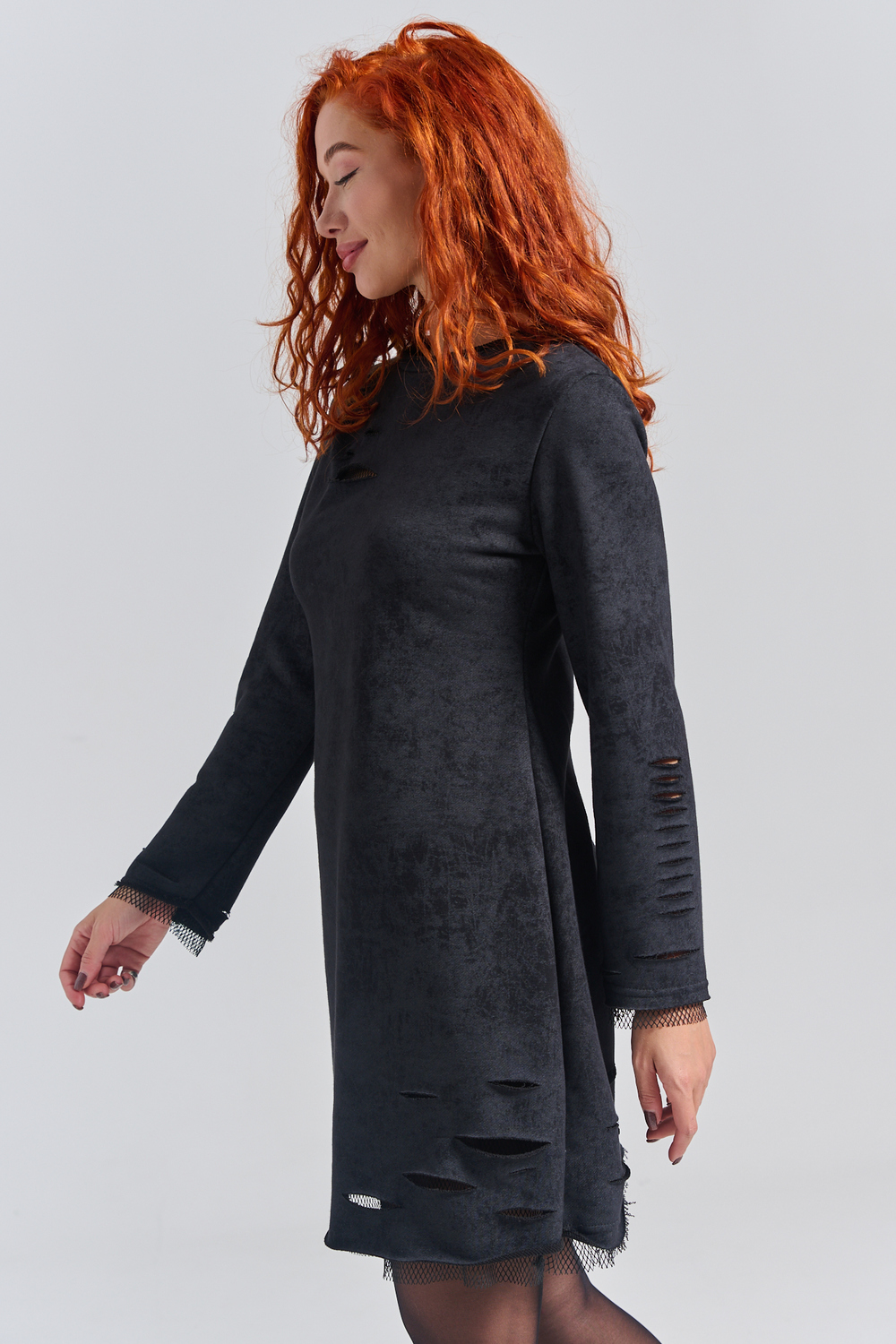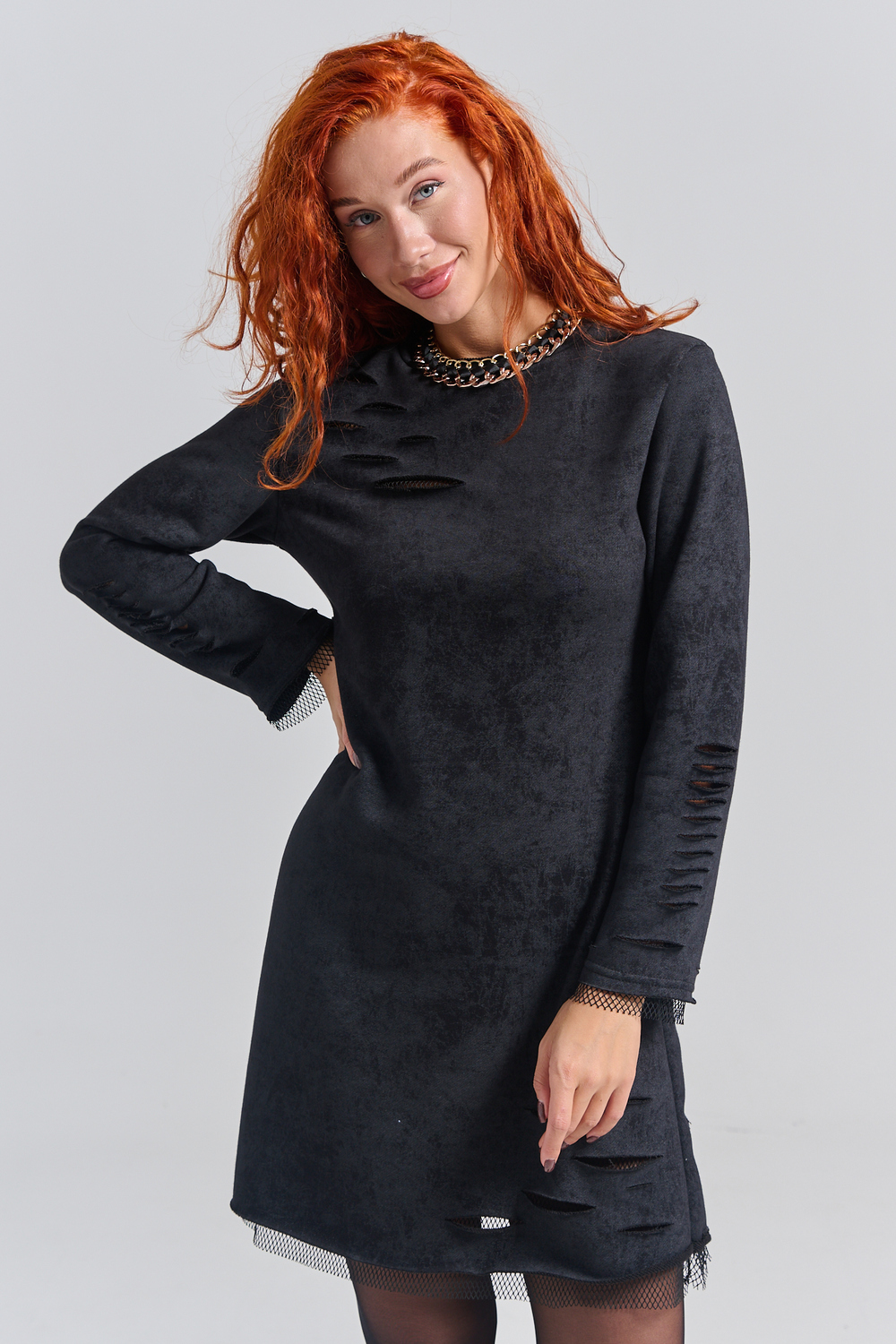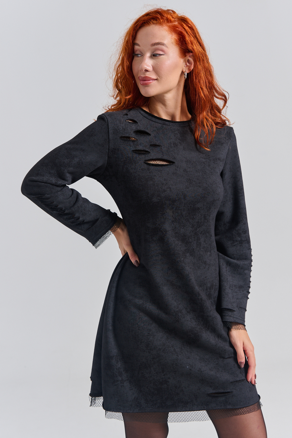 Рваное трикотажное платье с декоративными дырками пошито для создания гранж образов, концертов и вечеринок. Выбирайте это стильное платье для любых повседневных случаев: учебы, работы или отдыха с друзьями.