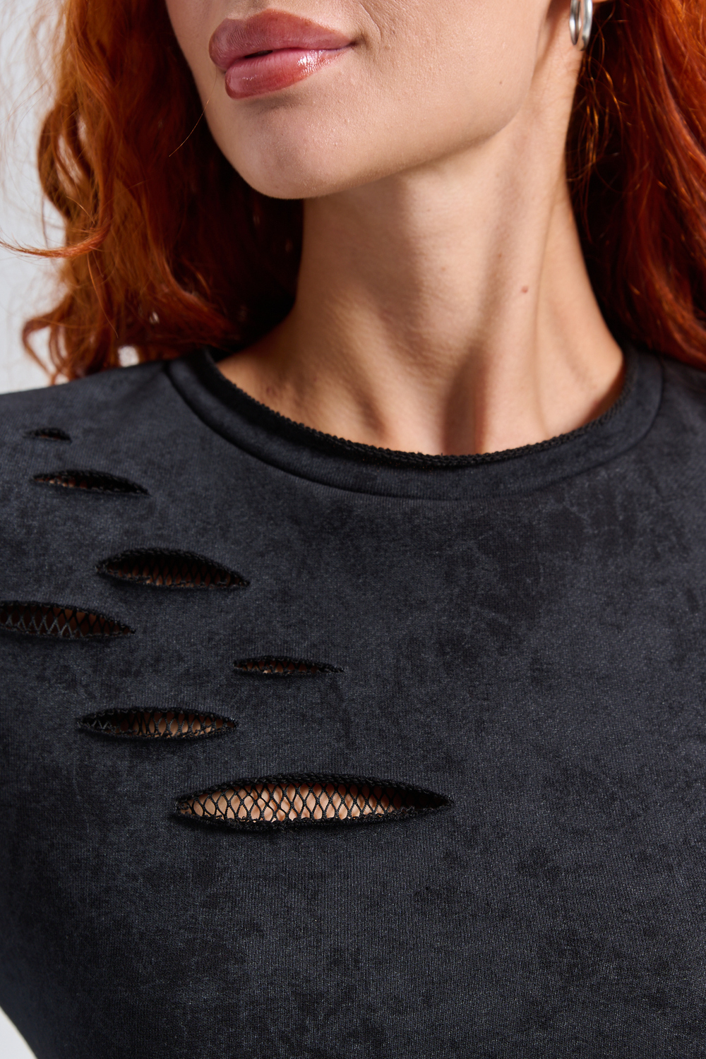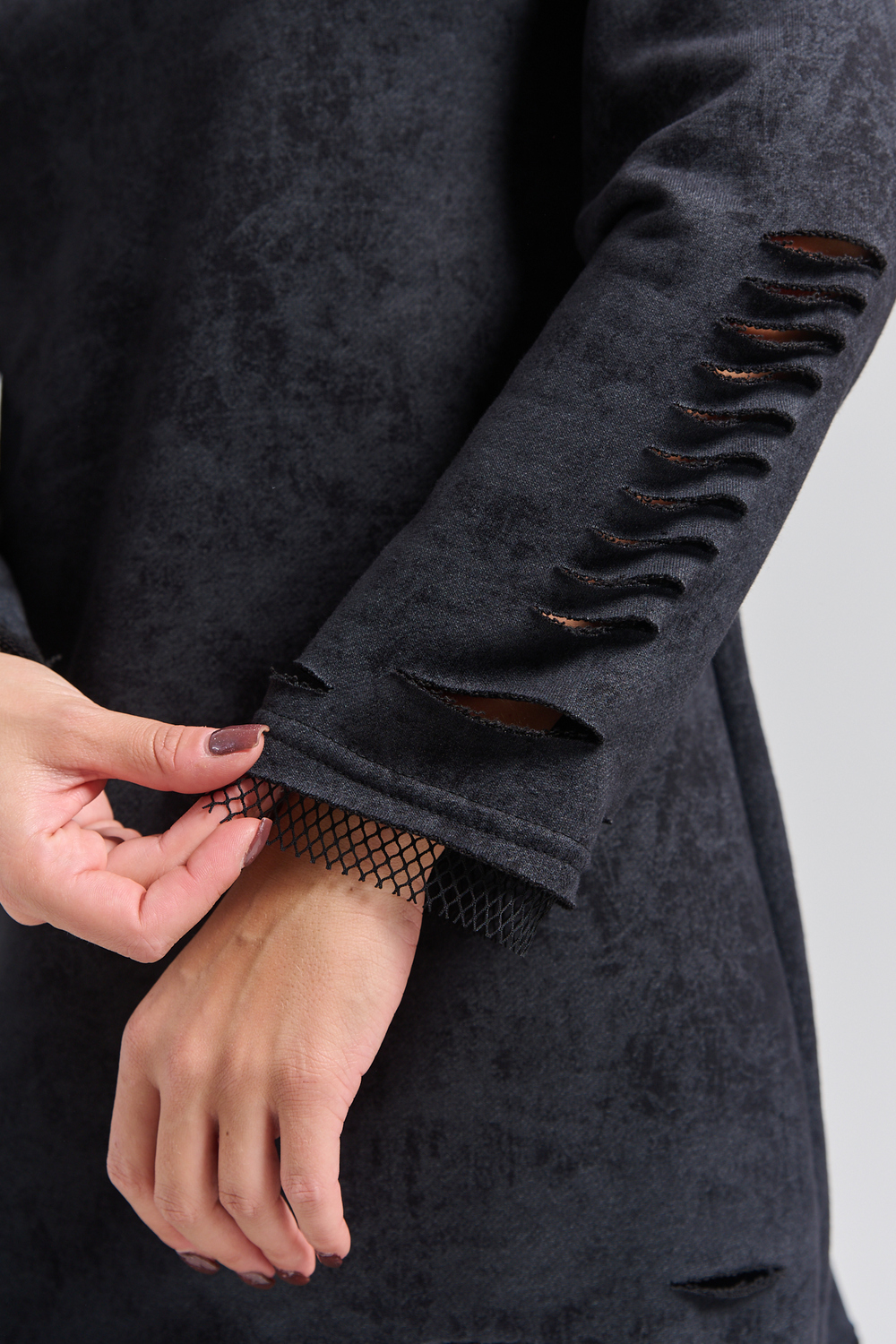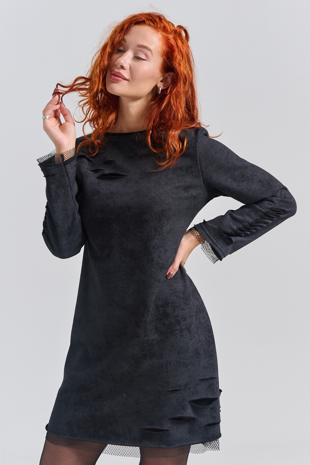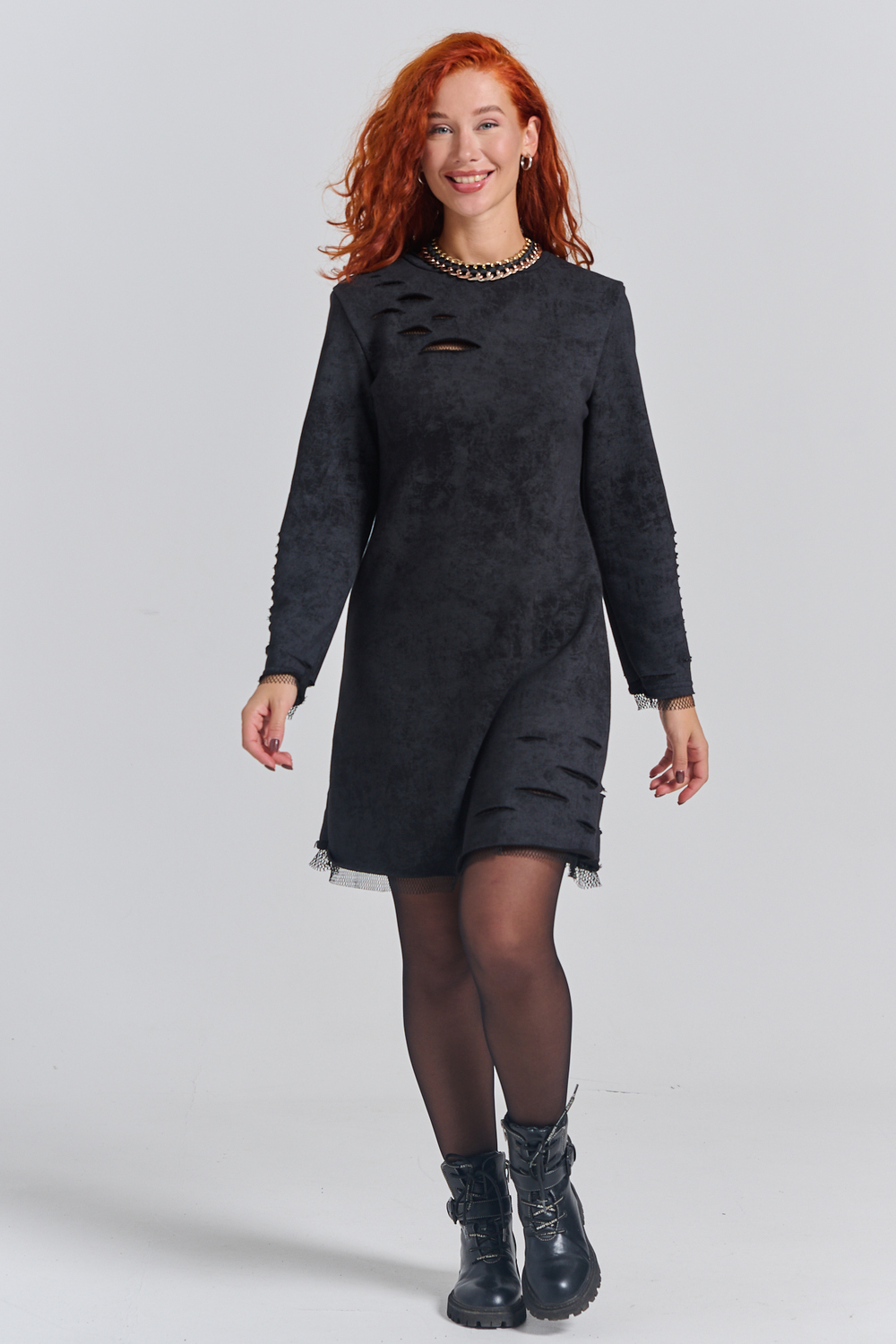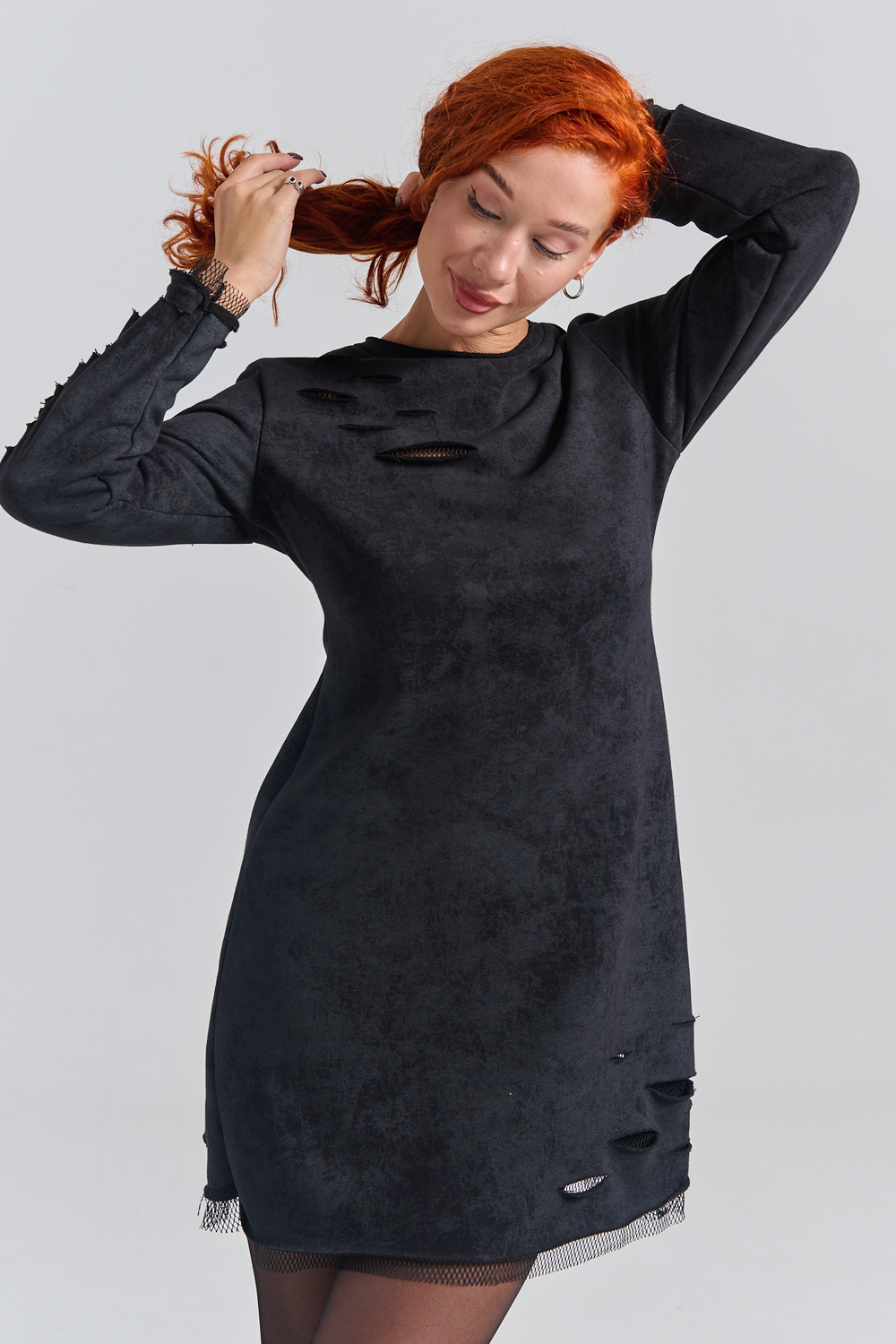Рваное трикотажное платье с декоративными дырками пошито для создания гранж образов, концертов и вечеринок. Выбирайте это стильное платье для любых повседневных случаев: учебы, работы или отдыха с друзьями.